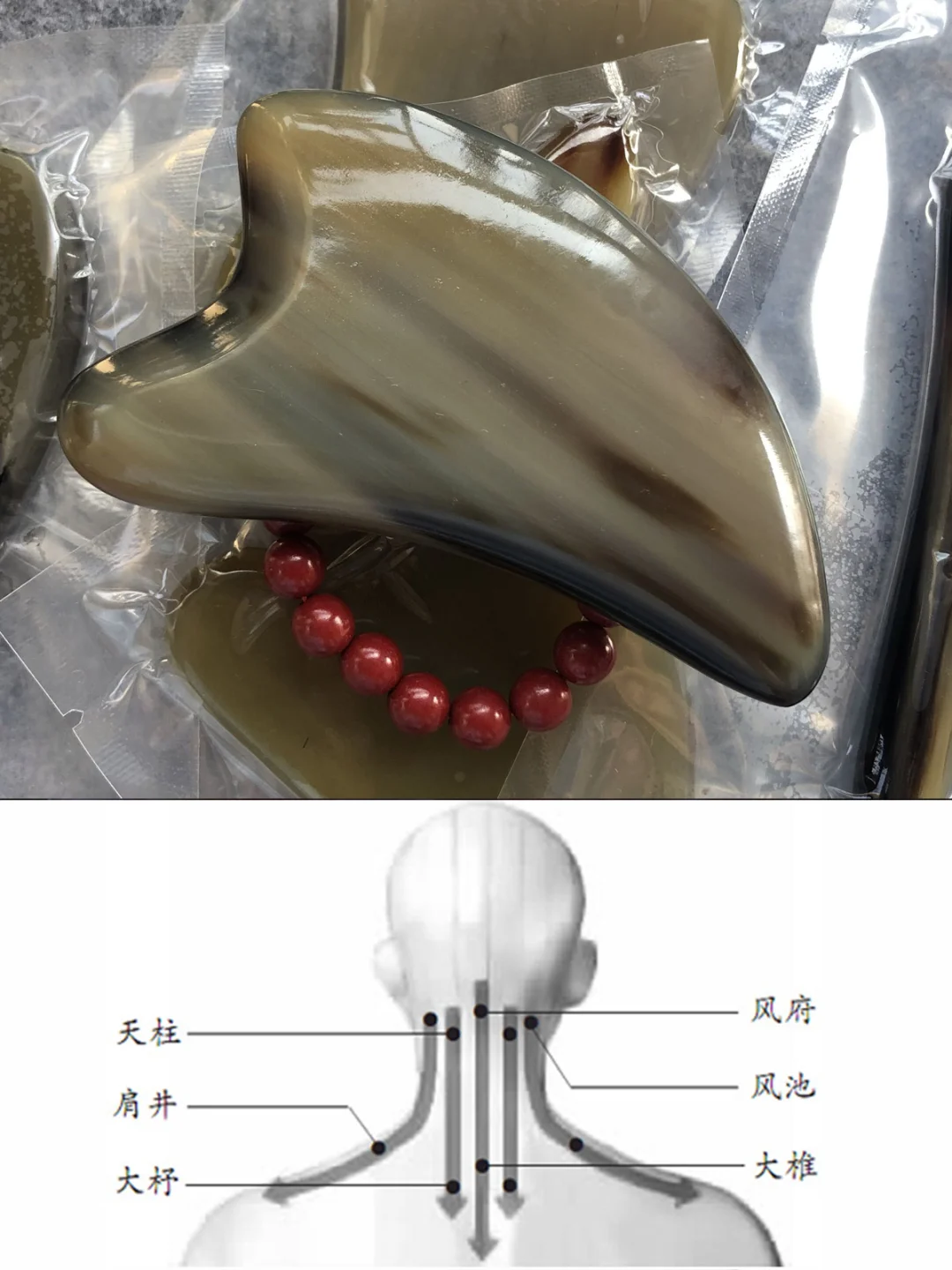 水牛角刮痧板是刮痧的常用器具,通过刺激人体的相关经络、穴位,从而达到活血化瘀、疏通经络、调和阴阳,温经散寒,增强皮肤渗透性,改善脏腑功能,增强免疫功能的功效。