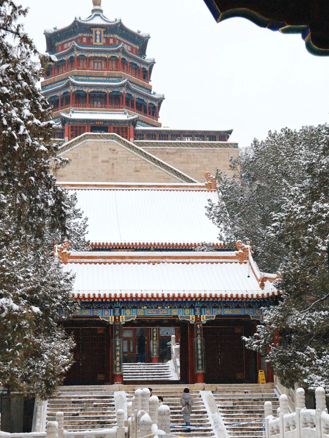 哈喽大家,我是香蕉牛奶,老早就想去拍颐和园的雪景,今天总算有时间出发了! 雪天路线: 北宫门—后湖—谐趣园—仁寿殿—昆明湖—佛香阁—长廊—画中游(原路下)—清晏舫(石舫)—后湖—北宫门 走走停停全程4h,要穿防滑的鞋子❗️❗️❗️