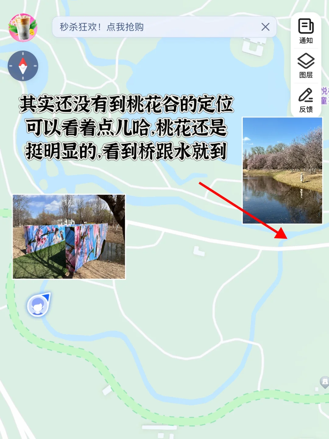 🧭奥森北园西门,进门右拐第一个桥左转一直走就看到了!或者🧭奥森N1🅿️,这里离桃花谷更近!