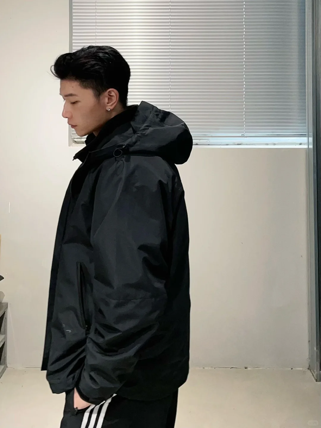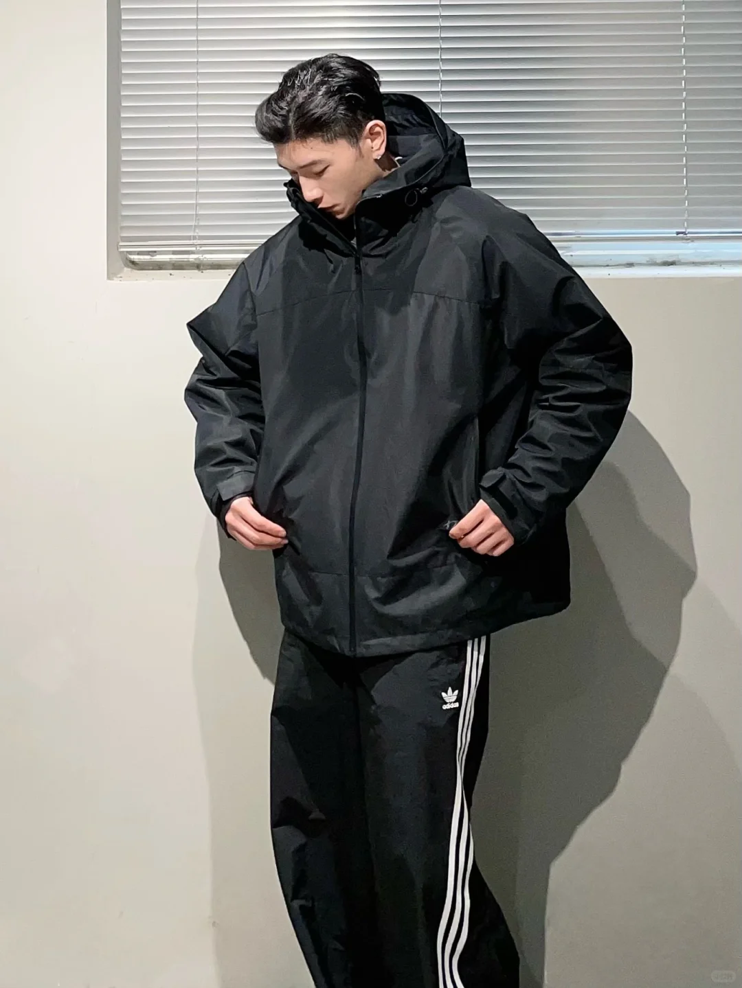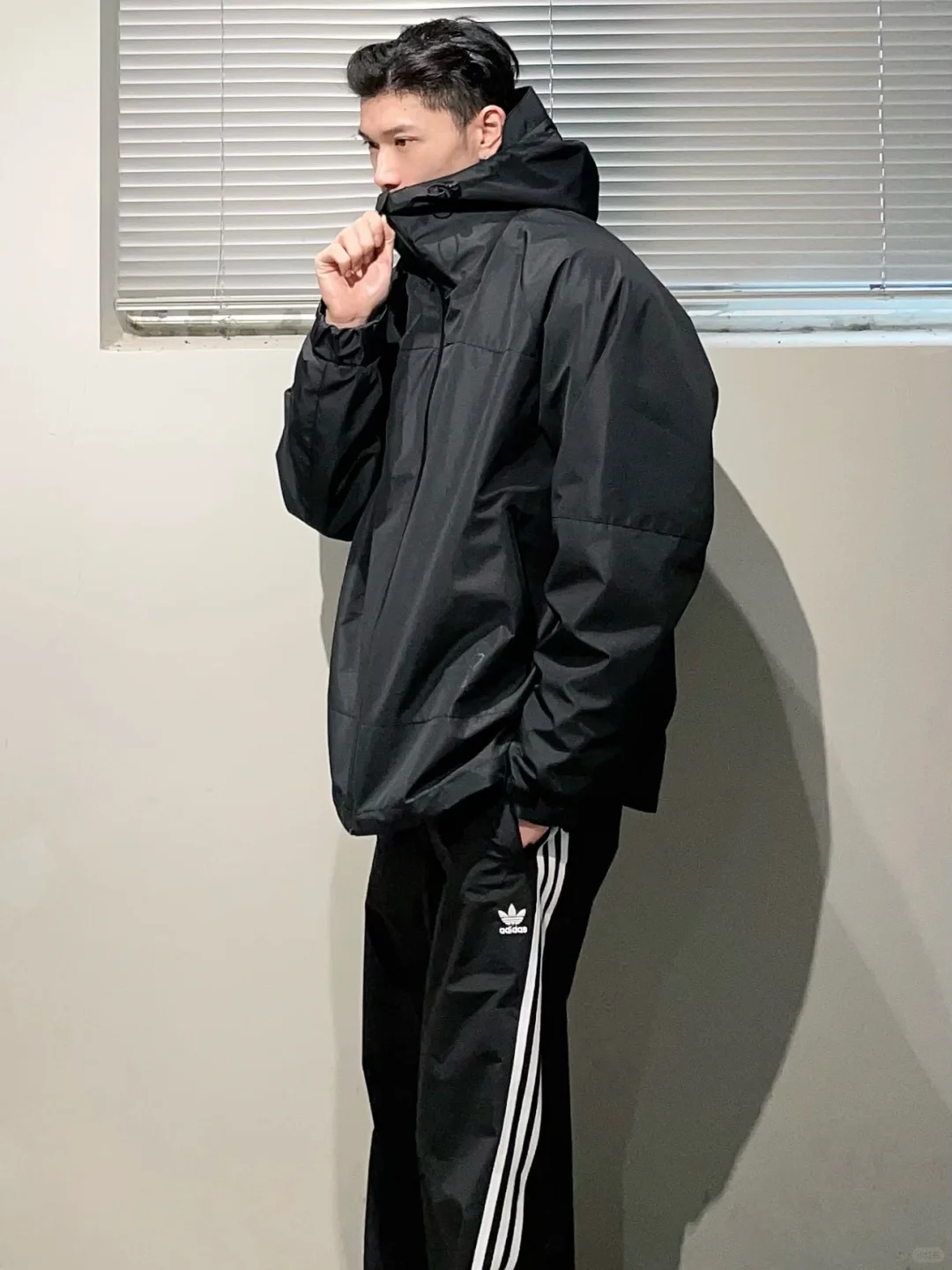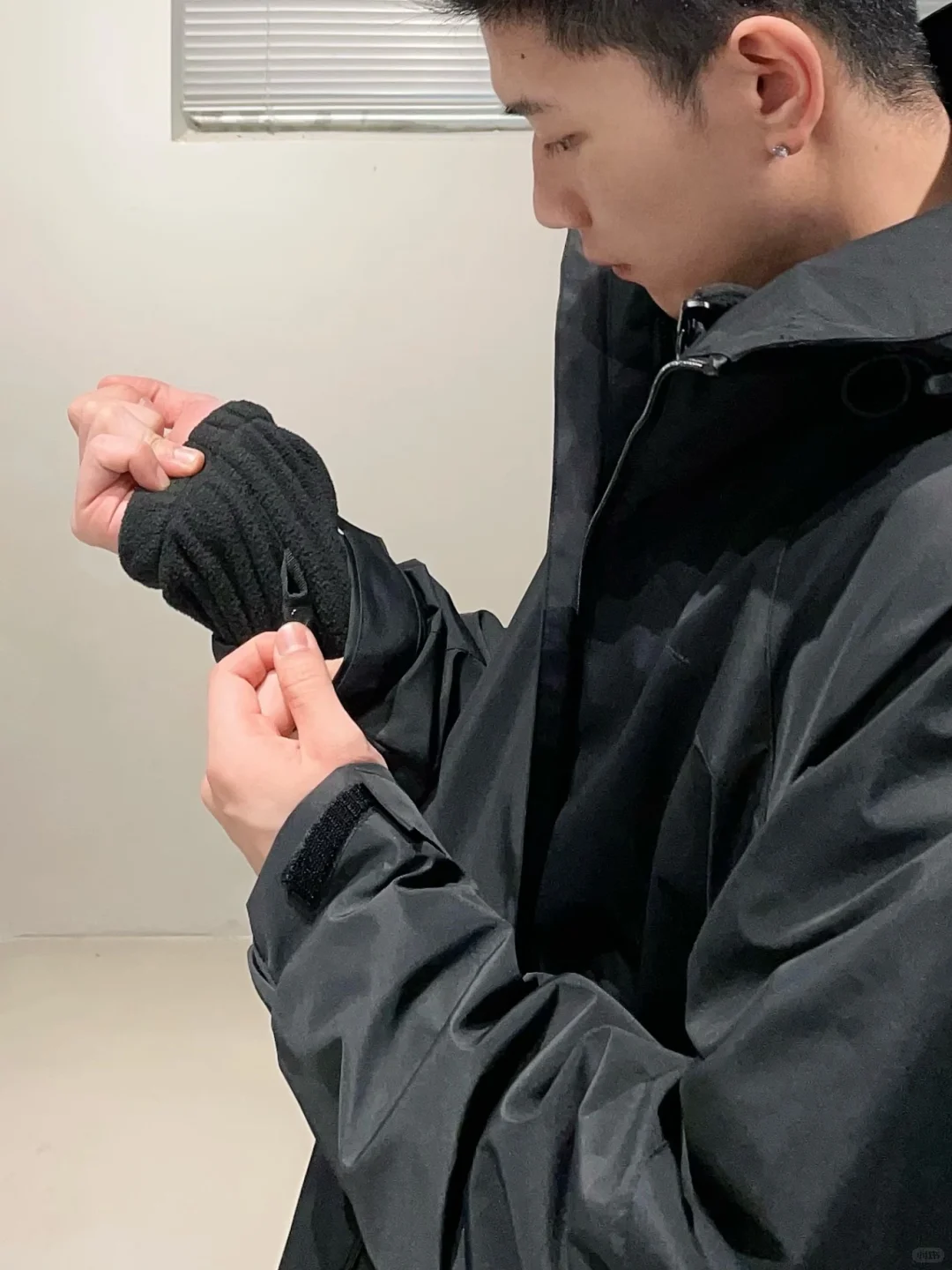 分享一款很喜欢的冲锋衣外套。 一衣两穿三防外壳内侧是保暖抓绒内胆,外壳材质防风防水内胆保温柔软正适合冬季穿搭! 上身版型非常帅纯黑配色也很有质感搭配一身黑色系很绝!