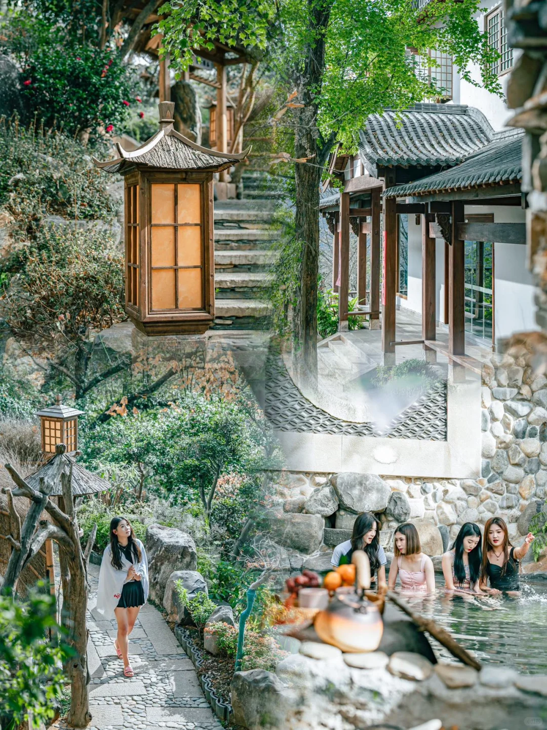 泡着暖暖的温汤,还能俯瞰古村全景!
