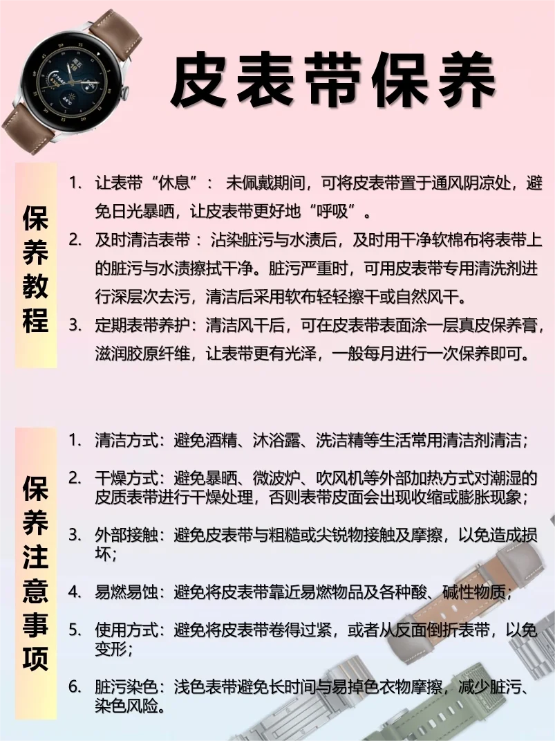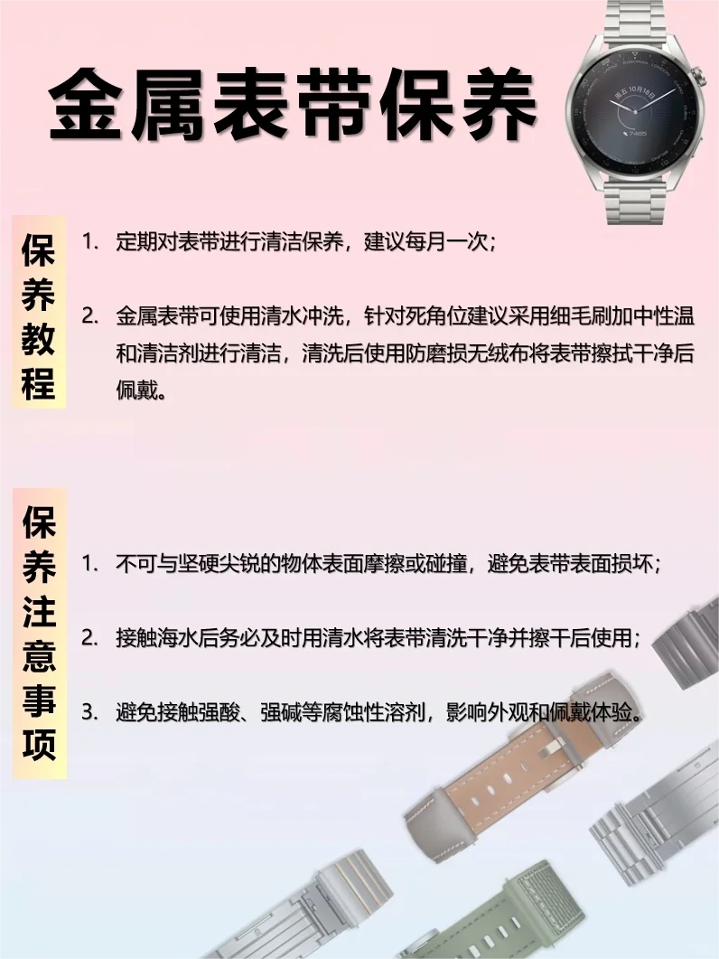 表友们来看❗️时间久了,表带就容易有灰尘、污垢,甚至出现磨损等问题。 为了避免这些问题的出现,教大家三种常用的华为表带(皮表带、金属表带、软胶表带)几个简单易上手的保养小技巧,赶紧收藏学起来吧🙋🏻♀️🙋🏻♀️