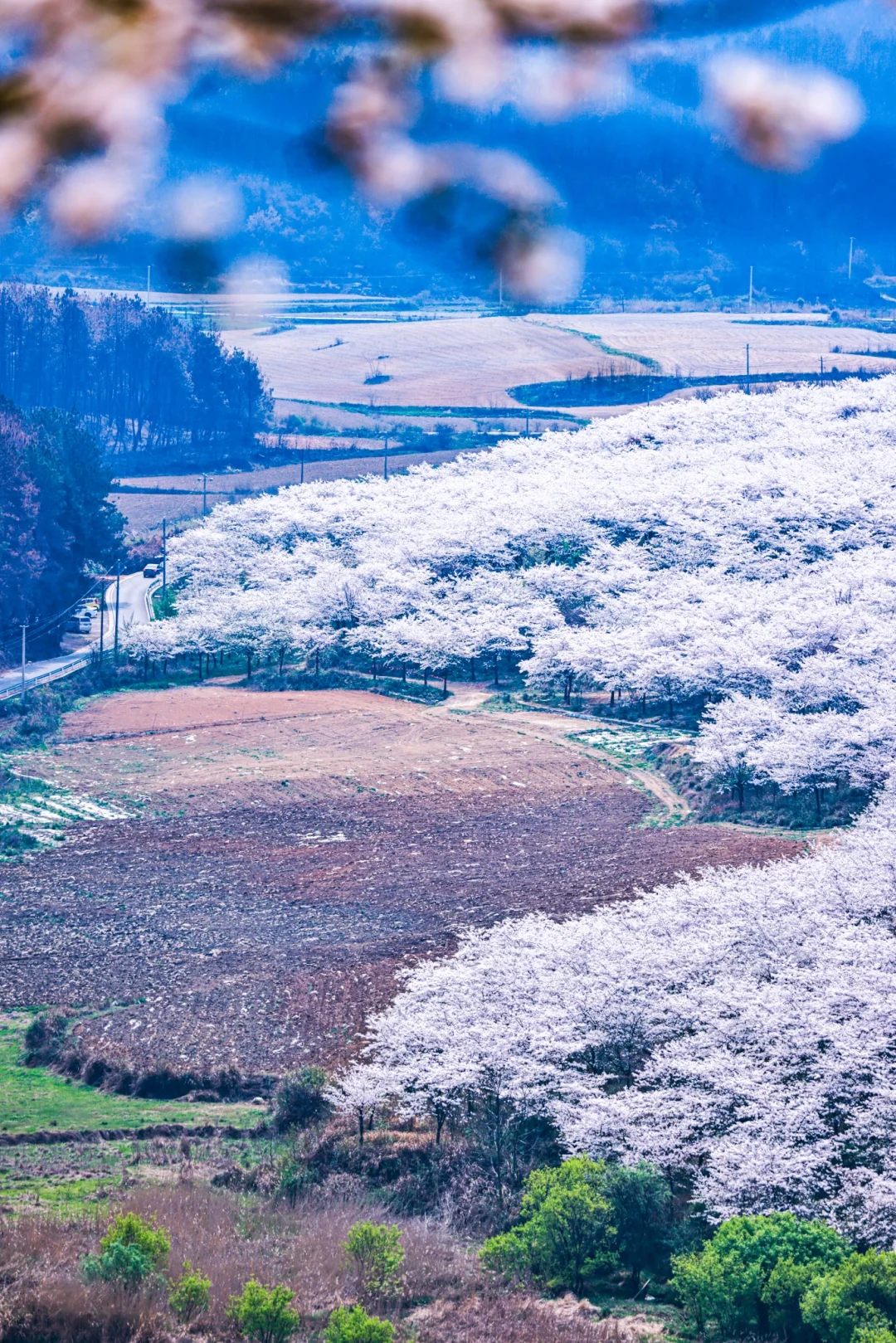 也是万亩樱花园,满山遍野都是,人不多