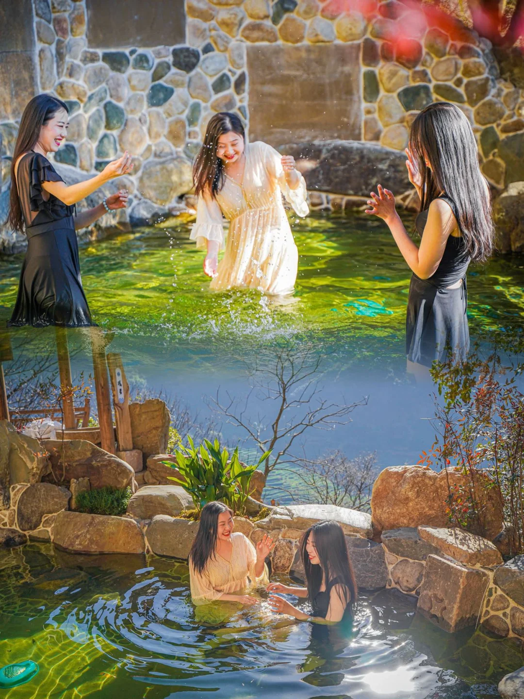 在景区最高点的露天温汤馆、恒温泳池馆欣赏到万亩梯田花海