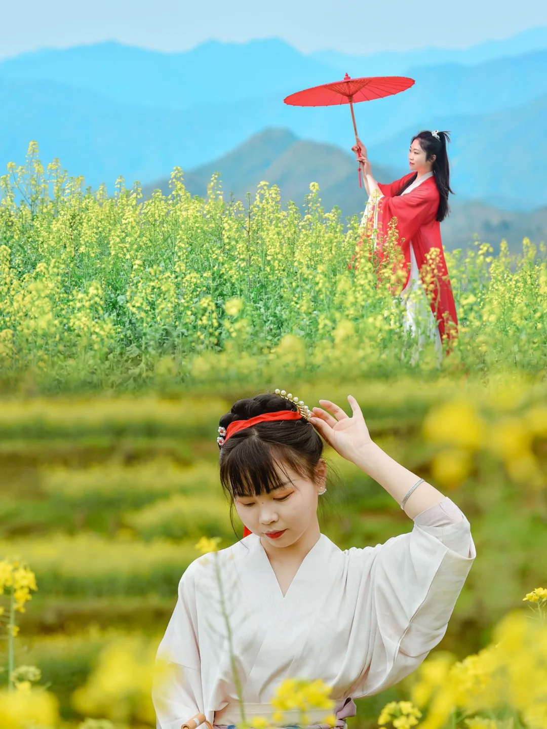 2、春季除了赏花,还有许多春季活动,可观看花艺古装表演、卖花郎等民俗活动,;另外花田深处有人家、春日限定晒秋和篝火晚会也是不能错过的~