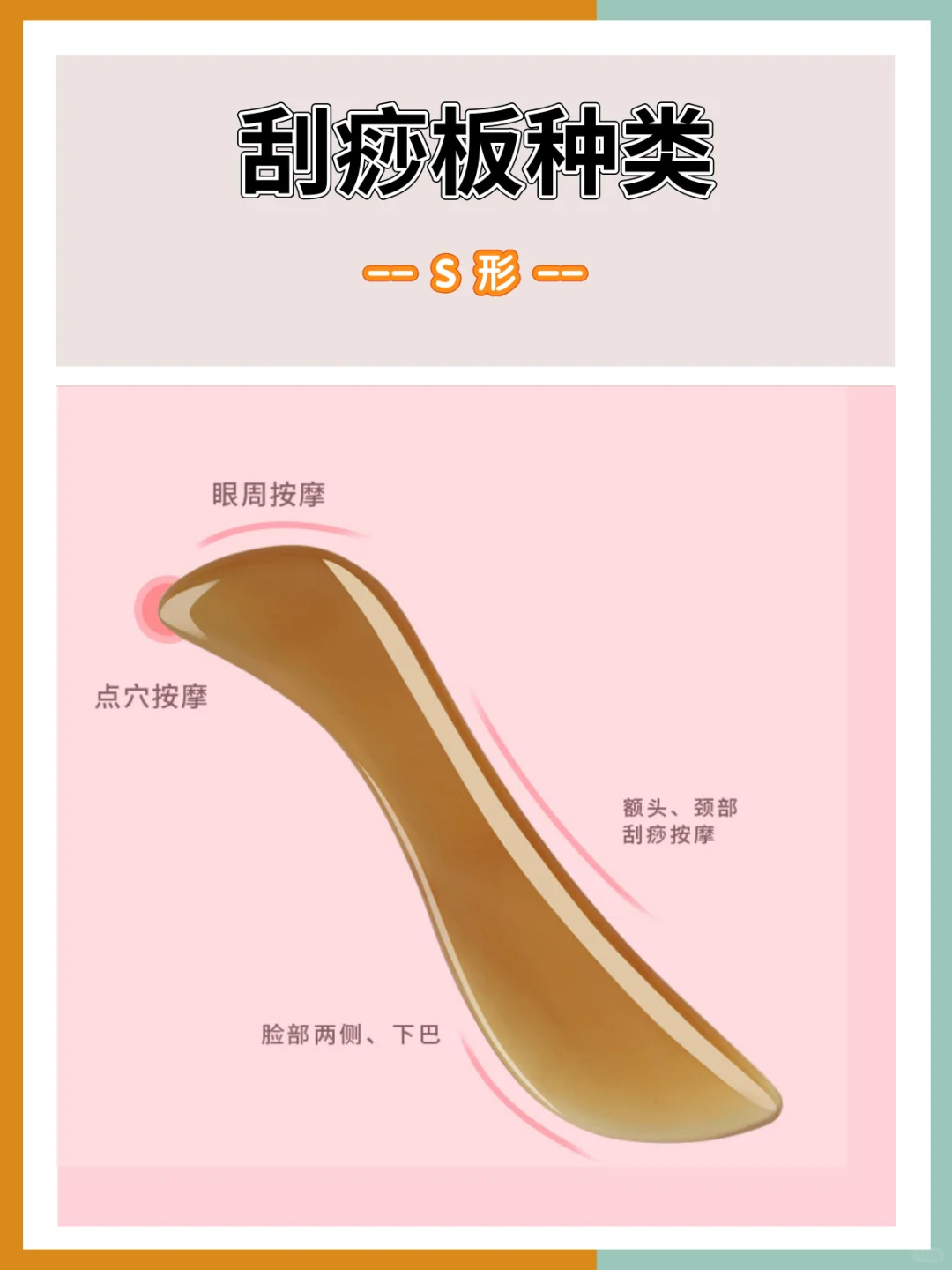 🌸S形:用于脸部、手部、颈部,也称之为美容刮痧板;