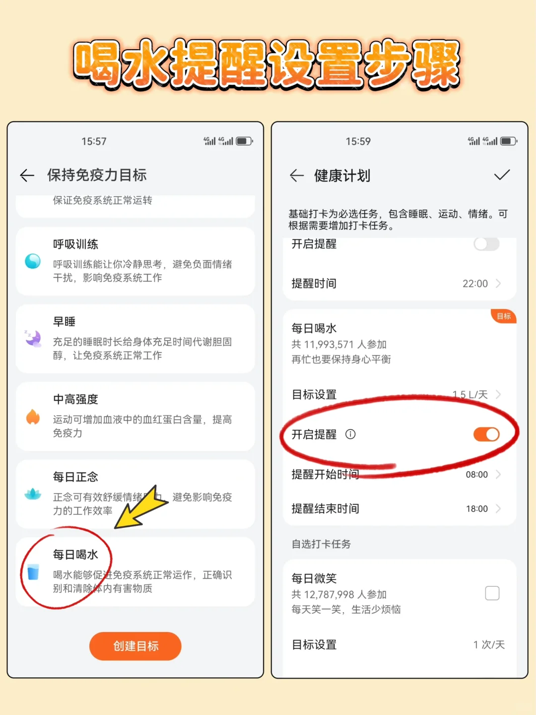 💦喝水提醒设置步骤: