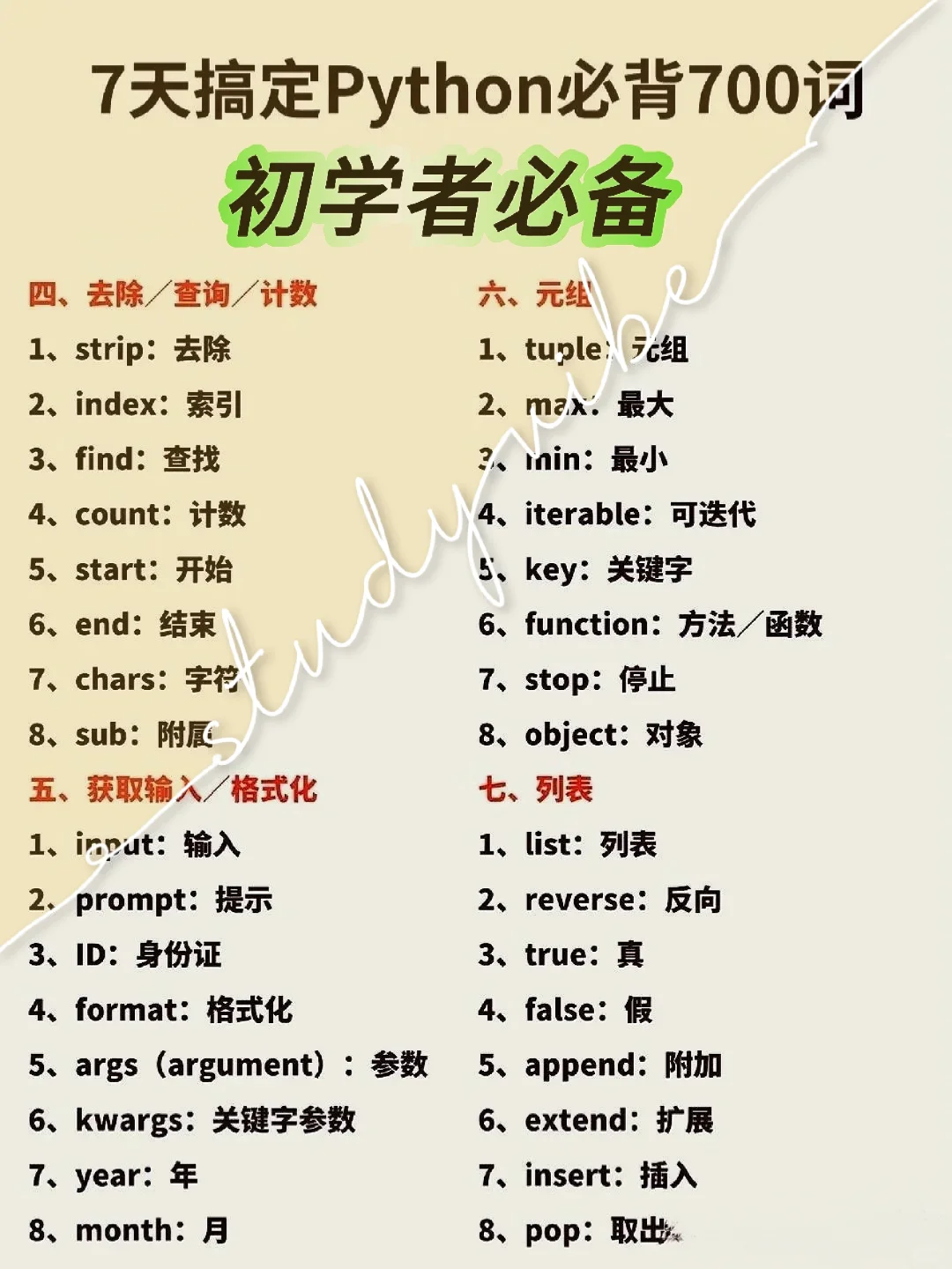 7天搞定Python必备700词❗❗❗