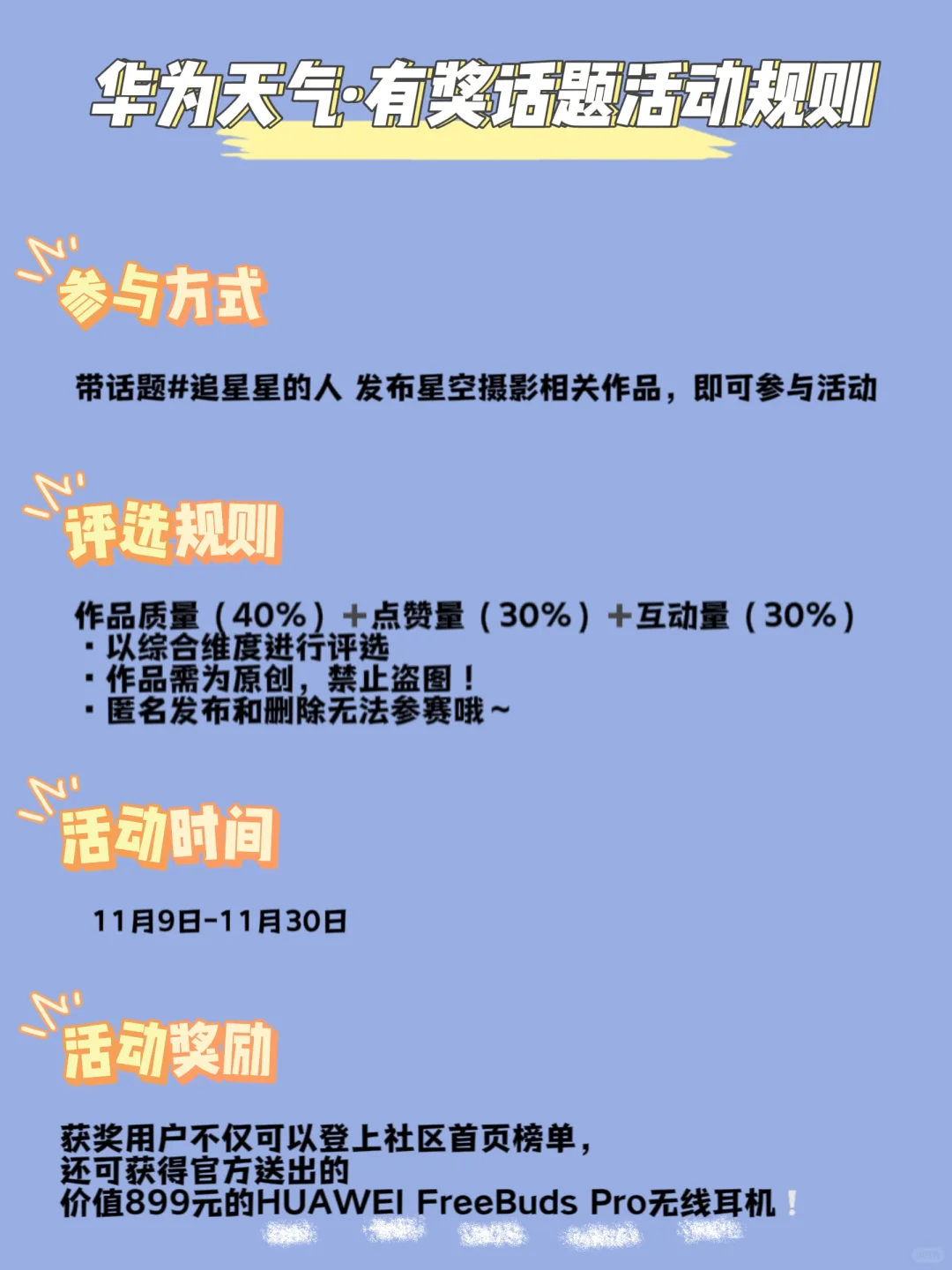 用你的镜头记录天空,让星辰有迹可循。参与华为天气时景社区追星星的人 话题,发布星空摄影相关作品,即可有机会获得礼品🎁 看看大家最满意星空摄影是哪一张🌟快来参与吧!