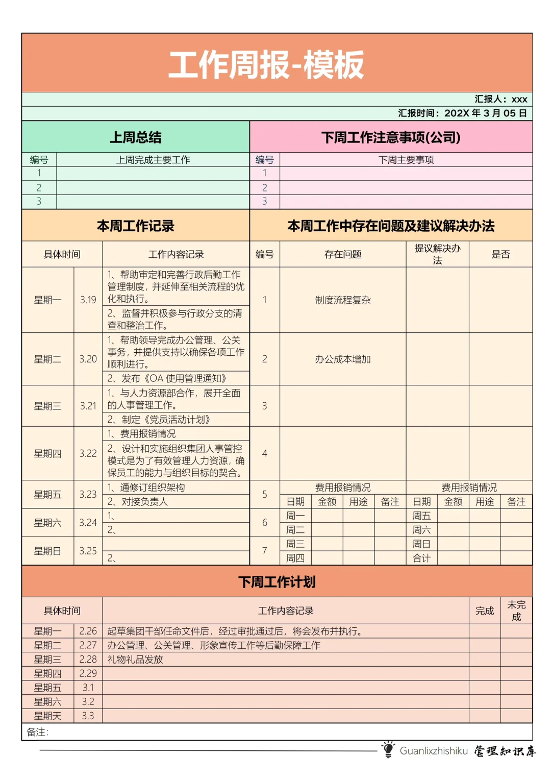 企业管理周报工作周报职场工作总结