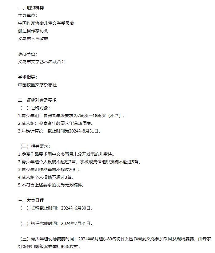 1.参赛作品要求用中文书写且未公开发表的儿童诗。