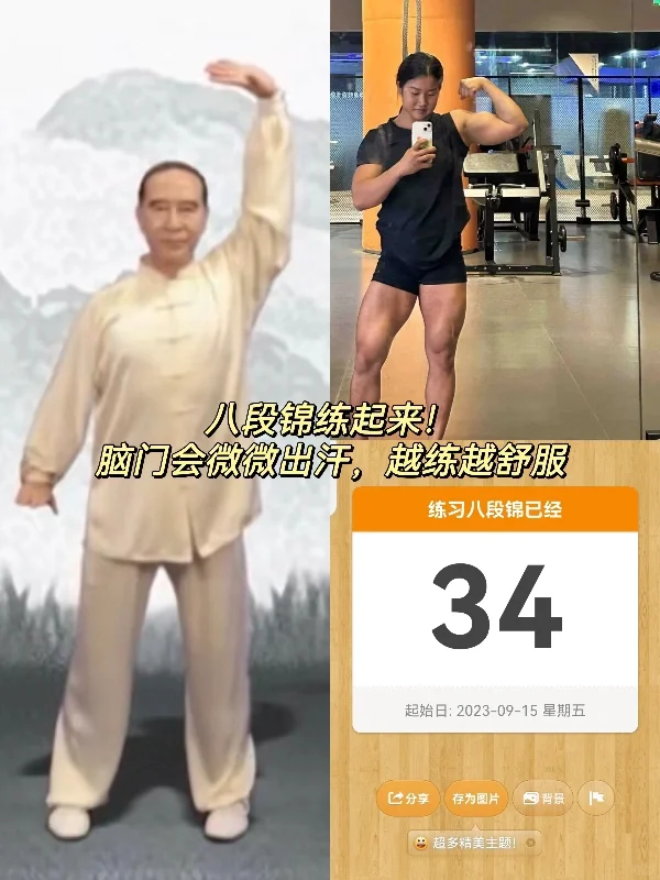 我是半年前就看过黄帝内经学过2天八段锦、练1次就甩膀子不干了太无聊了!没想到现在爆火,于是从9.15号下定决心自己做功课,开始磕磕碰碰打卡。