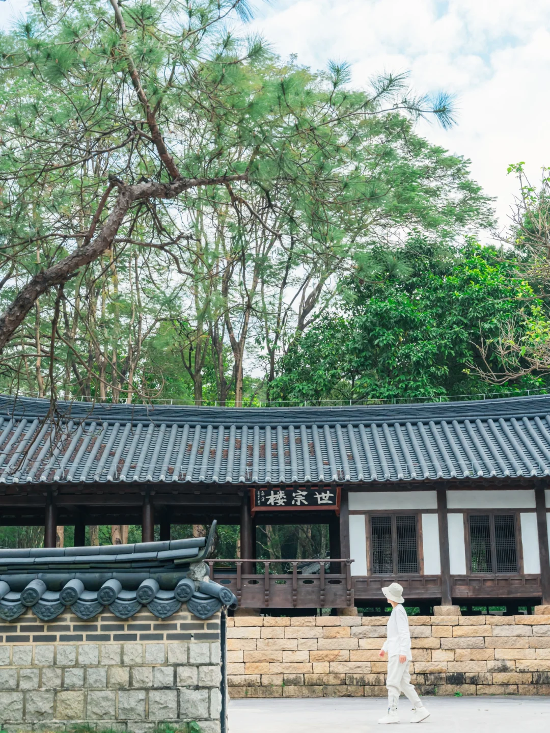 越秀公园内,一个非常小众的韩式庭院,里面的建筑全部采用传统韩国建筑风格,穿汉服、韩服在这拍照好好看