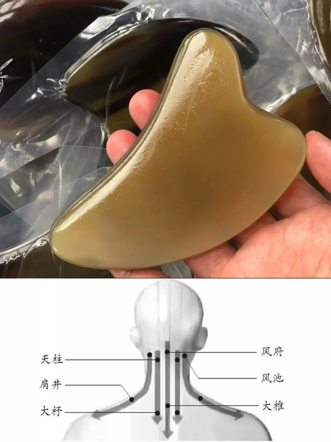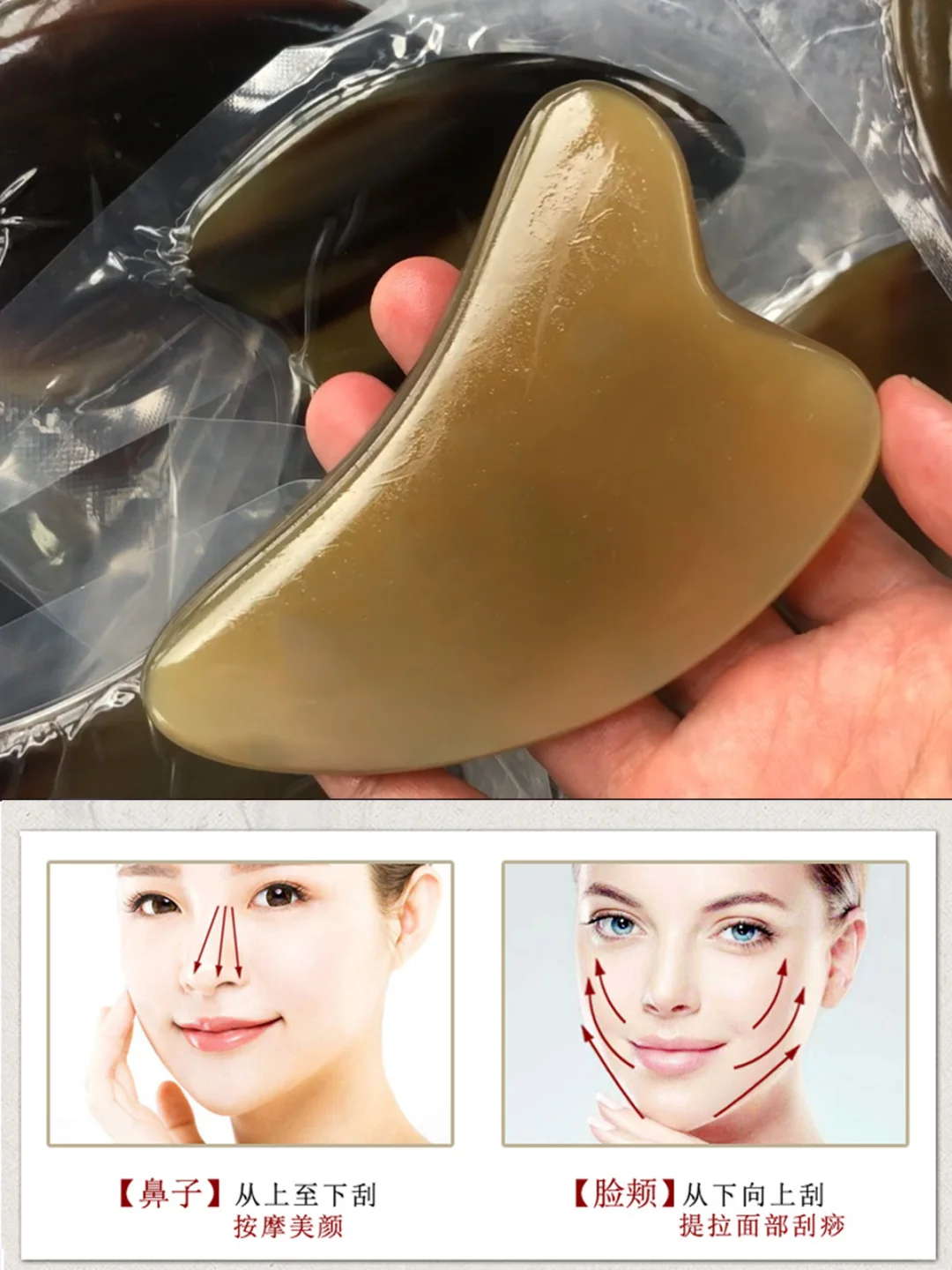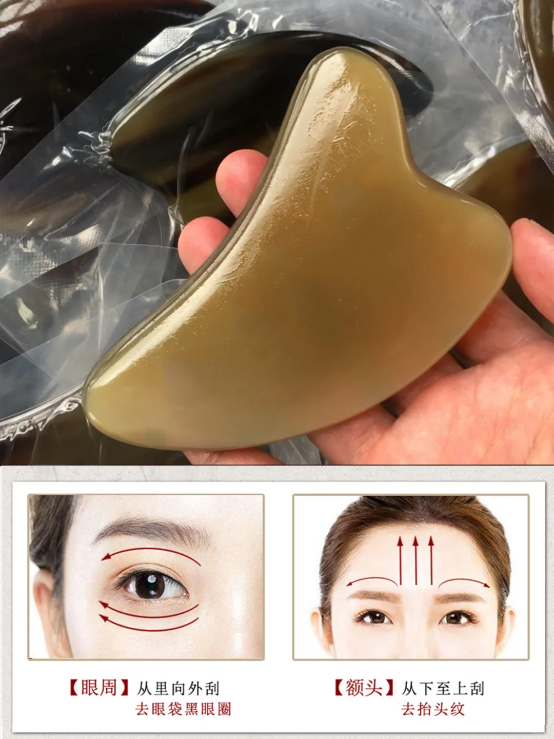 🔶1、先准备一块干净的面部牛角刮痧板,另外要准备刮痧乳,如果没有刮痧乳可以使用复方精油代替;