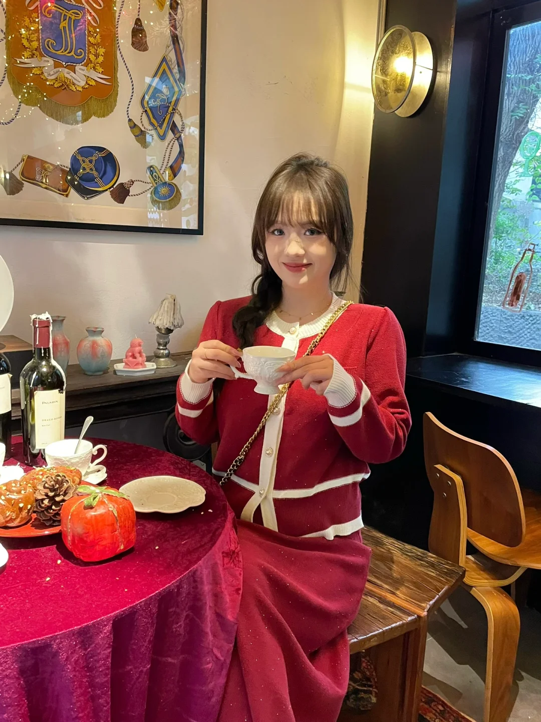 巨显白的红色套装谁能拒绝[色色R] 自带亮闪的面料好特别[派对R] 半身裙直接把下半身的肉肉全部遮掉 还有安全感[皱眉R] 圣诞节套装就是它了[偷笑R]