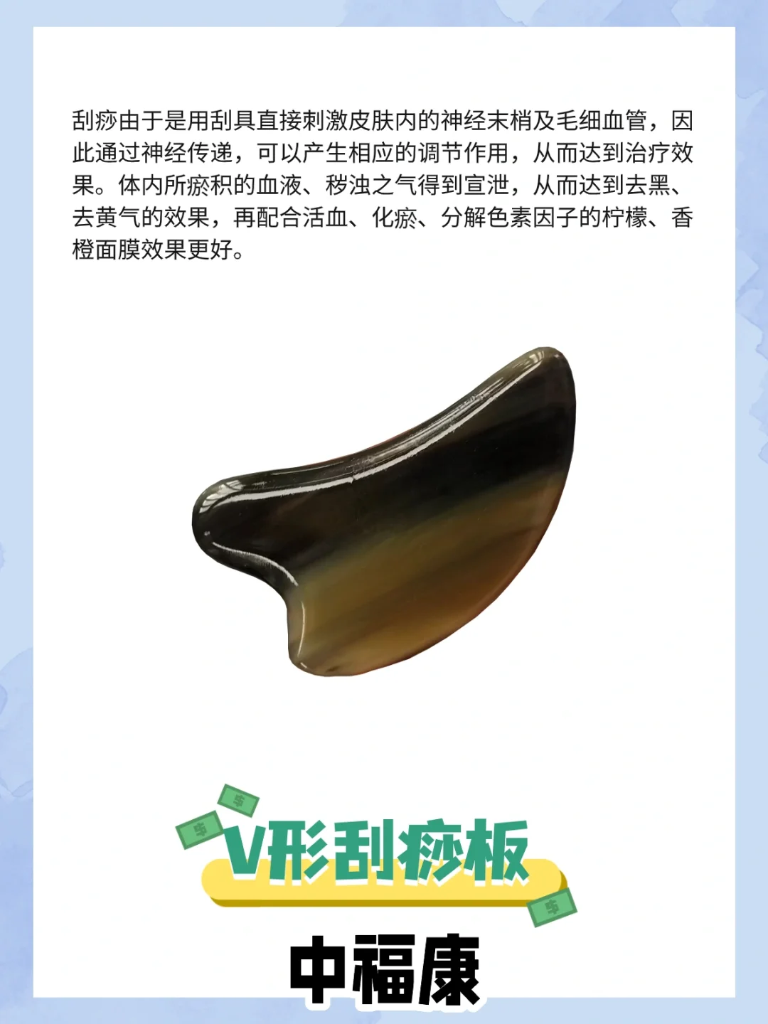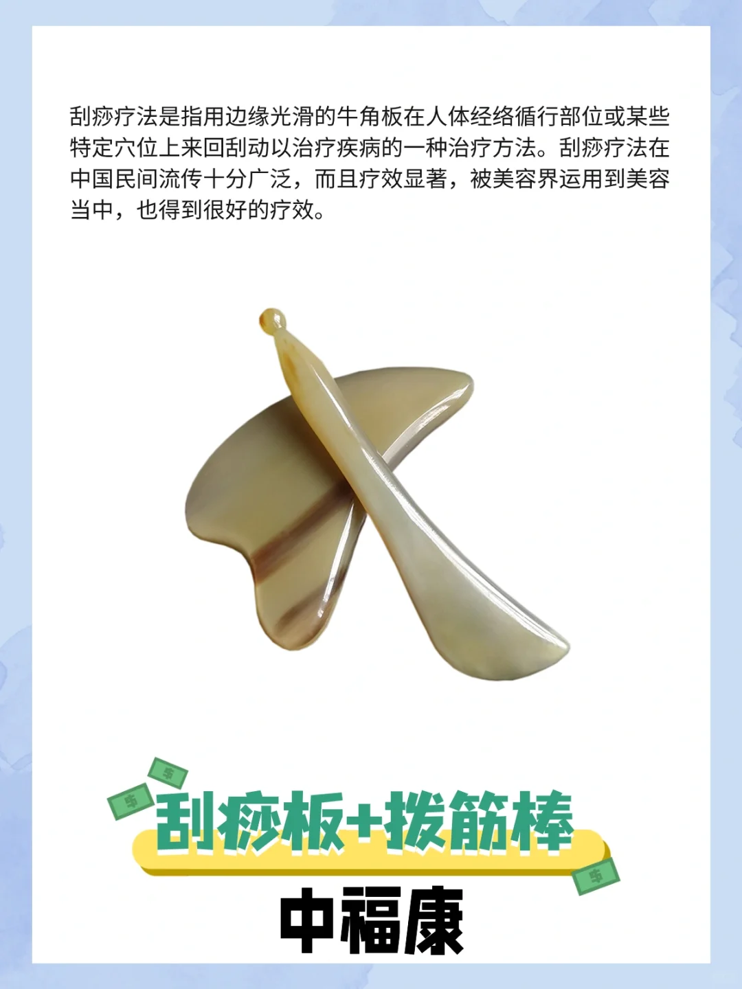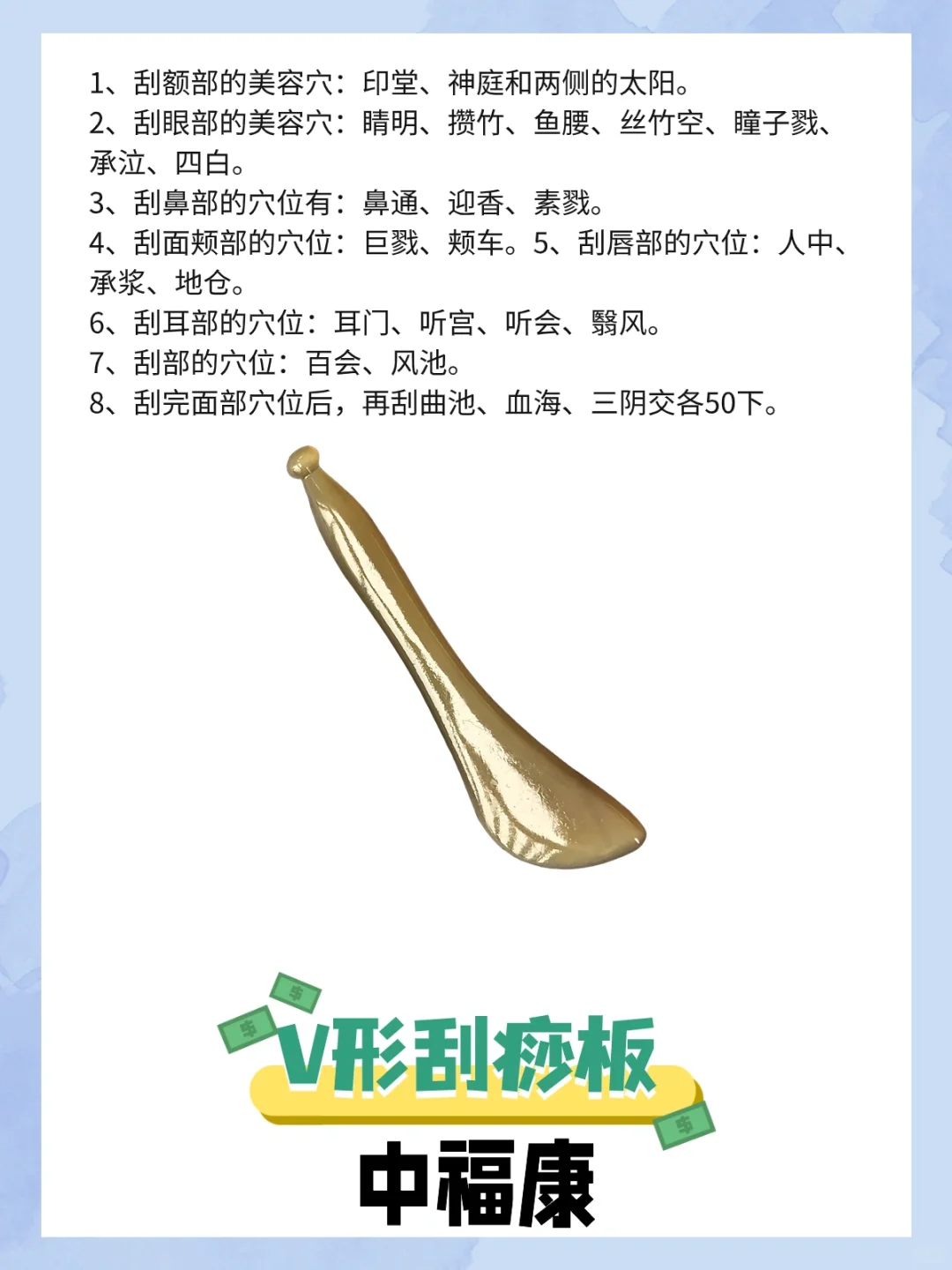 刮痧板:V形刮痧板,也叫桃心板、爱心板、小海豚刮痧板等,适用于脸部,四肢、背部,腹部; 拨筋棒:扇形拨筋棒,适用于眼周拨筋,脸部刮痧拨筋,穴位点按等; - 面部美容,穴位汇总: 🍁1⃣、额部:印堂、神庭、两侧的太阳 🍁2⃣、眼部:睛明、攒竹、鱼腰、丝竹空、瞳子戮、承泣、四白 🍁3⃣、鼻部:鼻通、迎香、素戮 🍁4⃣、面颊部:巨戮、颊车 🍁5⃣、唇部:人中、承浆、地仓 🍁6⃣、耳部:耳门、听宫、听会、翳风 🍁7⃣、头部:百会、风池 🍁8⃣、其它:曲池、血海、三阴交各50下 . ⭕️牛角刮痧板,拨筋棒,中福康刮痧板,经络梳,按摩梳,梳子,木梳子; ⭕️天然角板,任何2个板都不会一样; ⭕️✅刮痧板+拨筋棒,美容焕肤好搭档; ⭕️粉我,发信息❗️