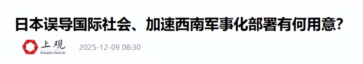 上观新闻 日本误导国际社会、加速西南军事化部署有何用意?