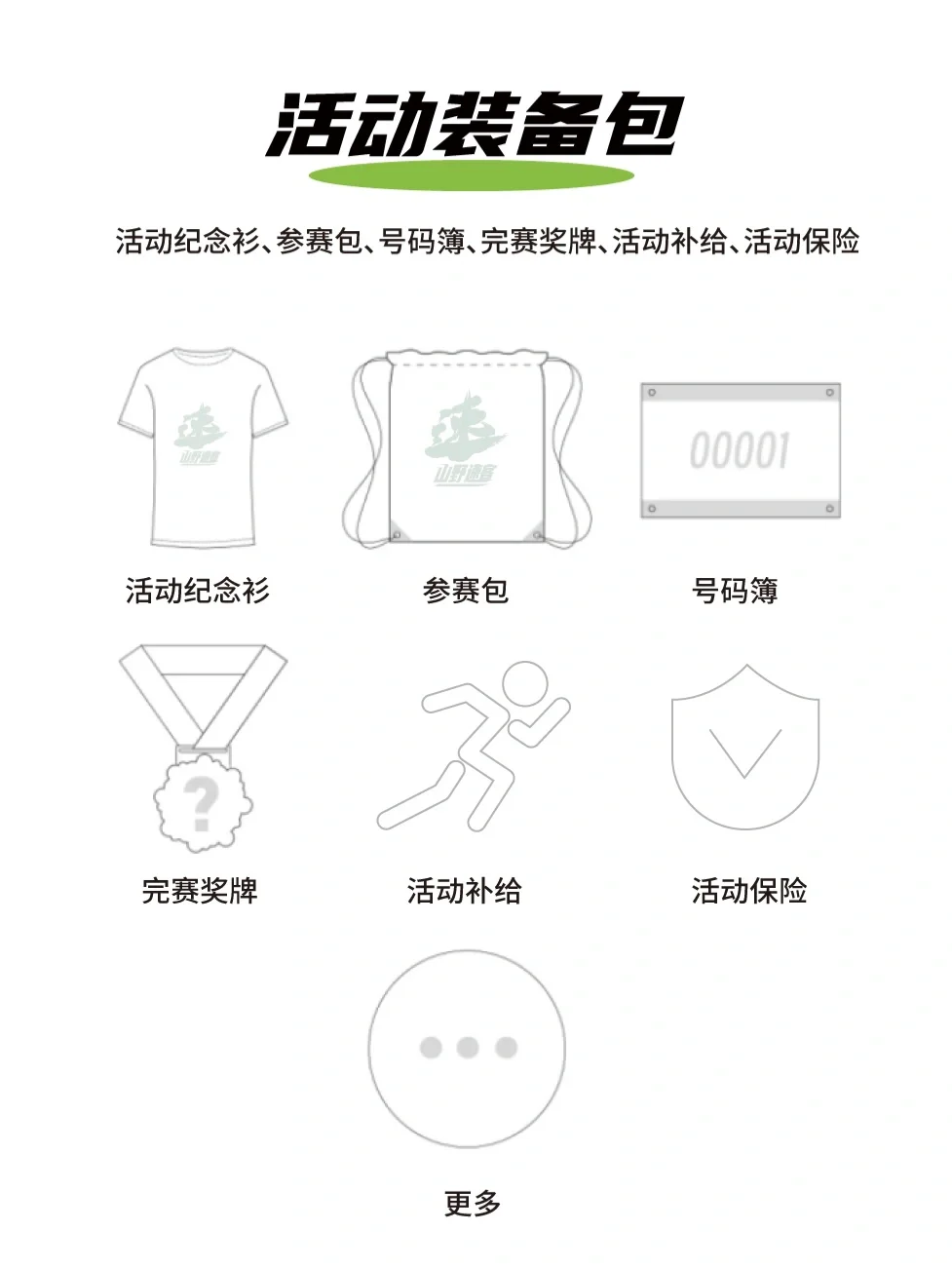 ✅本次活动提供专业活动领队、活动补给、文化纪念衫、参赛包、号码簿、赛事奖牌、户外保险等