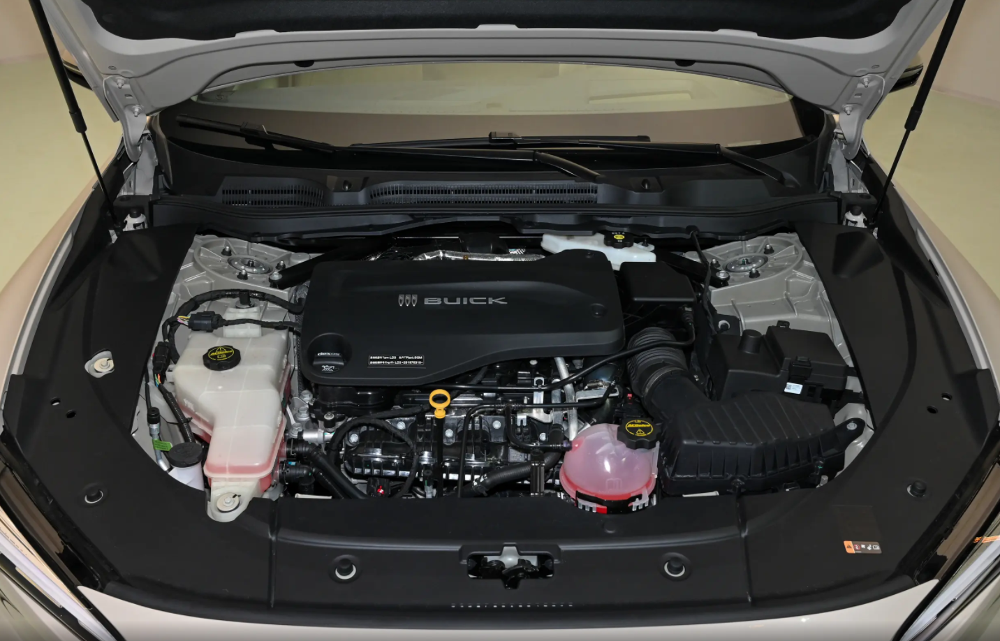 在车身尾部,别克至境L7采用贯穿尾灯,搭配将近2米的车身宽度,以及尾部翘起的小鸭尾和后叶子板处明显的宽体设计,也让这台车显得更加厚重。此外,别克至境L7的后备箱容积很夸张,虽然没有开口更大的掀背尾门,但整个后备箱做得确实够深。