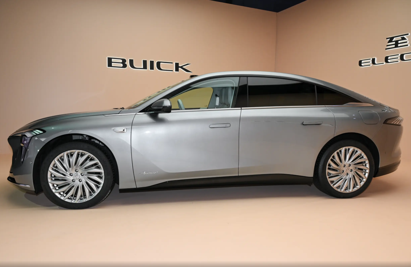 来到车侧,别克至境L7的“三围”来到了5032/1952/1500mm,轴距则是3000mm。与此同时,较长的车头搭配修长的车身和溜背的车顶,这些元素也会让至境L7显得更有档次感。不仅如此,别克至境L7还配备了前排多层隔音玻璃,以及后排隐私玻璃,再加上实拍图中这台艾维亚版本所采用的轮圈样式,同样可以提升整车的高级感。而除此以外,别克至境L7也采用了无框车门+隐藏式伸缩门把手的组合。