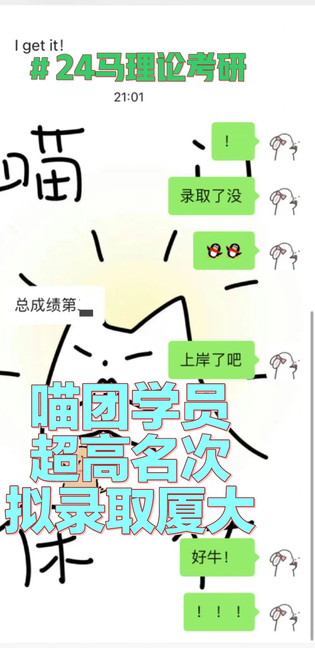 今天有好几位24年马理论初试报考厦大的学员给喵团报喜啦[烟花R][烟花R][烟花R]