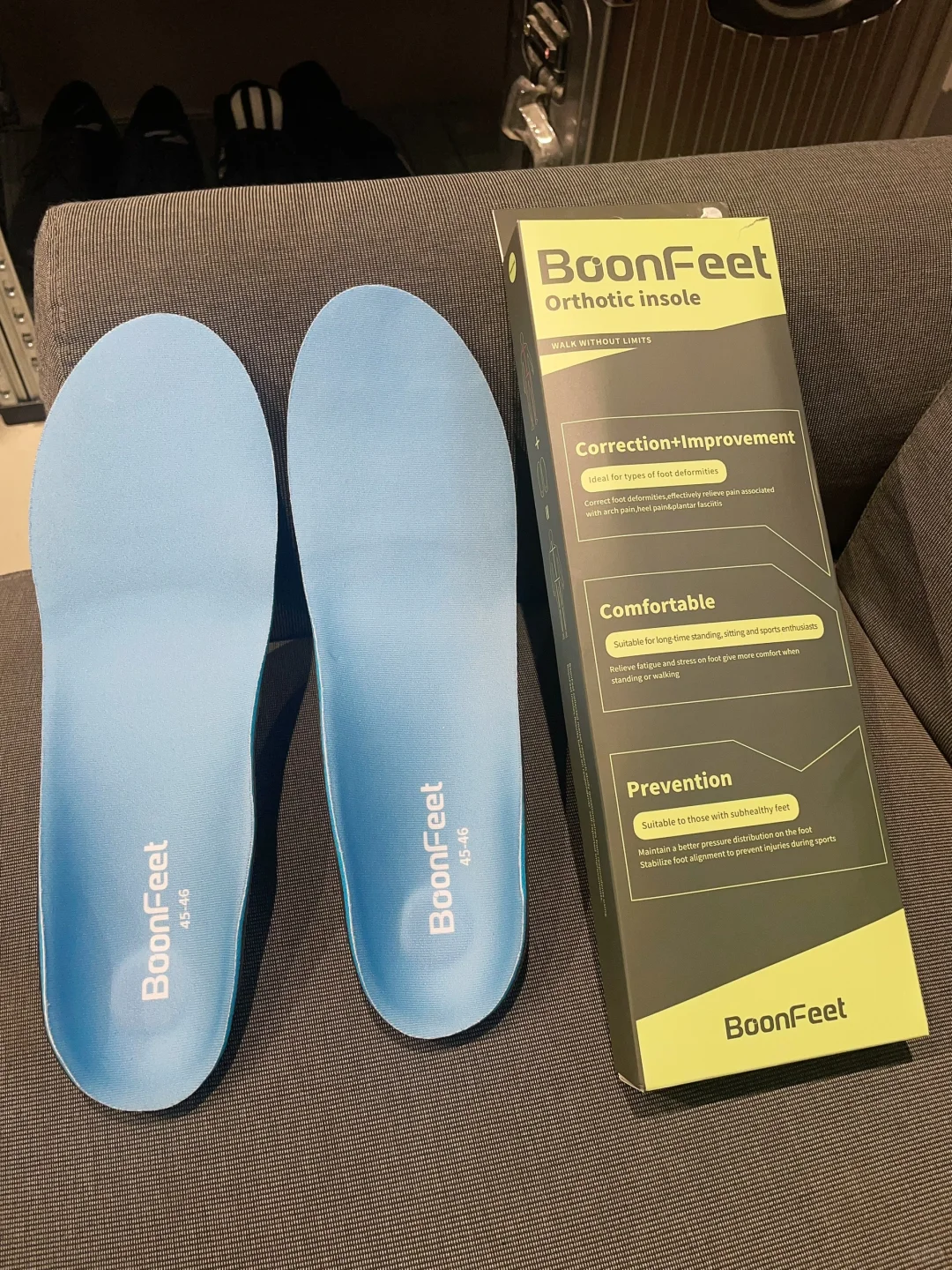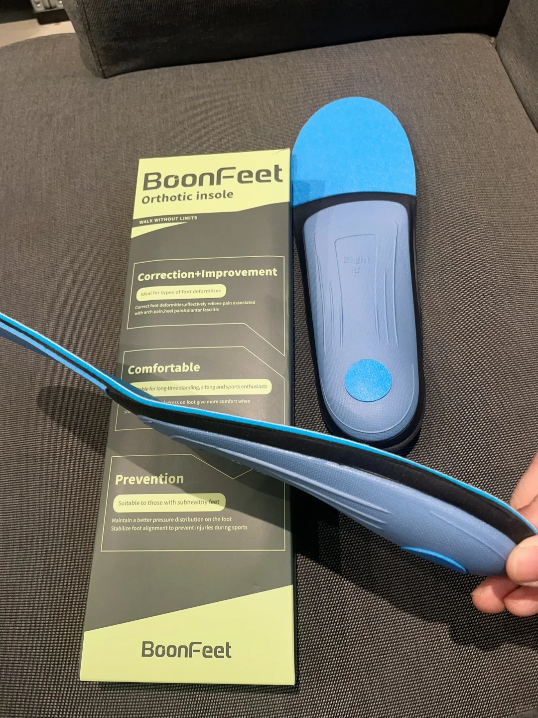 鞋子很多但每双穿完脚都会有酸疼感,这次从鞋垫入手,BoonFeet一款有足弓支撑的鞋垫,收到直接上脚不得不说脚感确实很舒适,鞋垫厚度软硬程度都适中但穿着舒适度特别好!科技含量很高采用稳定足垫有效改善足部受力曲线与外翻情况减少足部负担。可日常穿着或在运动时也很合适,鞋垫贴合足弓除了很好的舒适度在运动中有效提高稳定性也能较少不必要的运动损伤。真的是好物了!