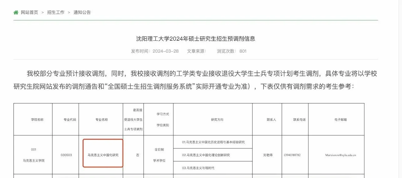 【喵团马理论调剂信息栏】更新 沈阳理工大学马理论专业有调剂名额 调剂要求见图和官方通知 有需要的宝贝及时关注