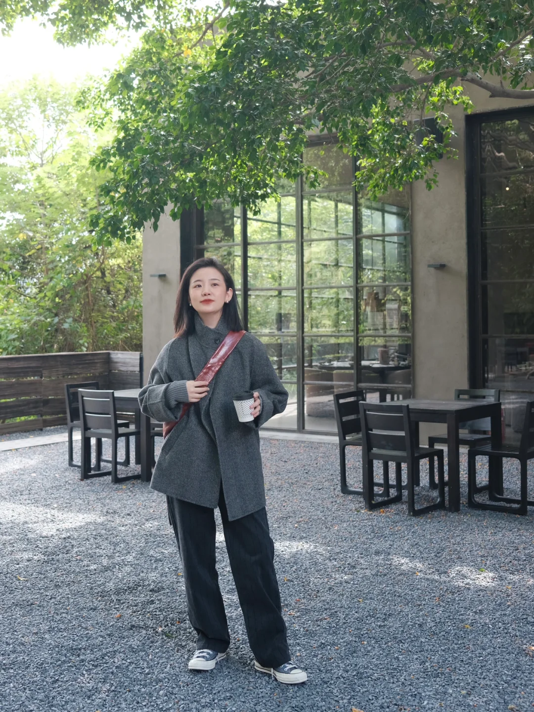 好爱这个长度的大衣, 利落百搭,通勤友好, 点缀一点点红, 打破秋冬沉闷~ 🏷️🏷️🏷️🏷️🏷️🏷️ 一套:Dotdrobe多着 耳夹&项链:Oriel 砖红牛角包:lemaire
