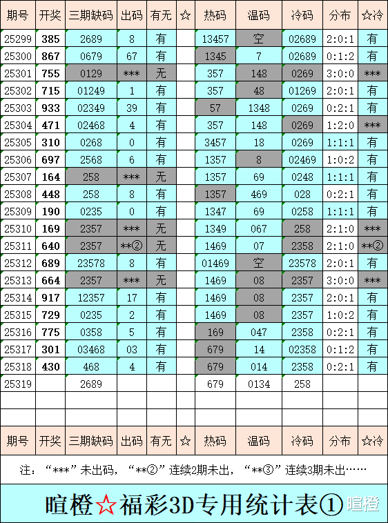 25319期:暄橙福彩3D综合条件(本期超时,仅统计)