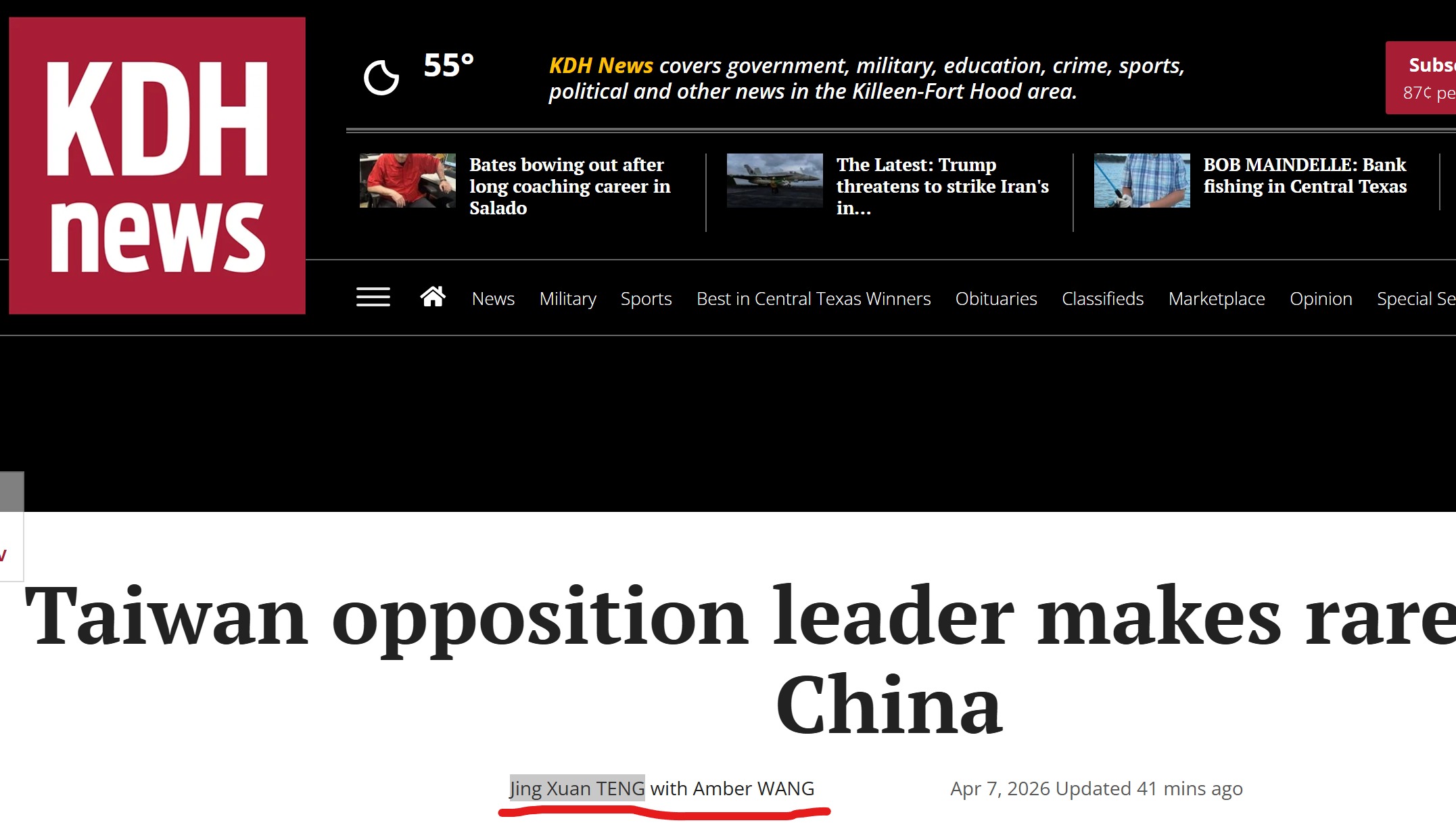 不过随后笔者知道了“答案”——因为这篇报道的记者名字是典型的汉语拼音(且不同于过去海外华人使用注音拼音),显然他是了解两岸关系的大陆华人(见上图红线处)。