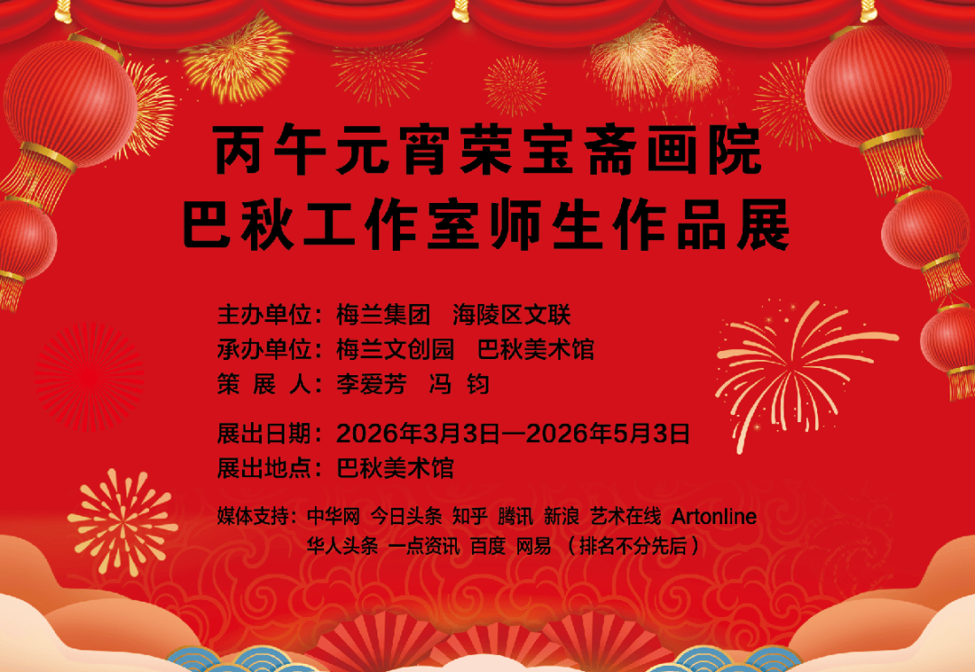 由梅兰集团与海陵 区文联主办,梅兰文创园与巴秋美术馆承办的 《 丙午元宵荣宝斋画院巴秋工作室师生作品展》 ,将于2026年3月3日正式拉开帷幕。这是一次对家乡水土的深情回望,也是巴秋先生与学生们献给泰州父老的一份新春贺礼。
