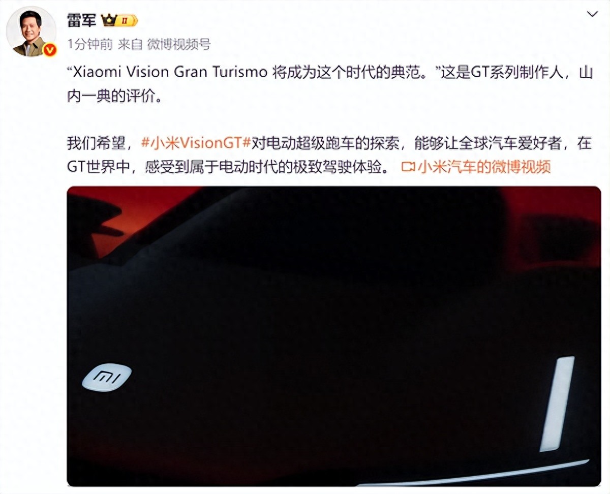 小米创始人雷军对此寄予厚望。他表示,我们希望,小米VisionGT对电动超级跑车的探索,能够让全球汽车爱好者,在GT世界中,感受到属于电动时代的极致驾驶体验。
