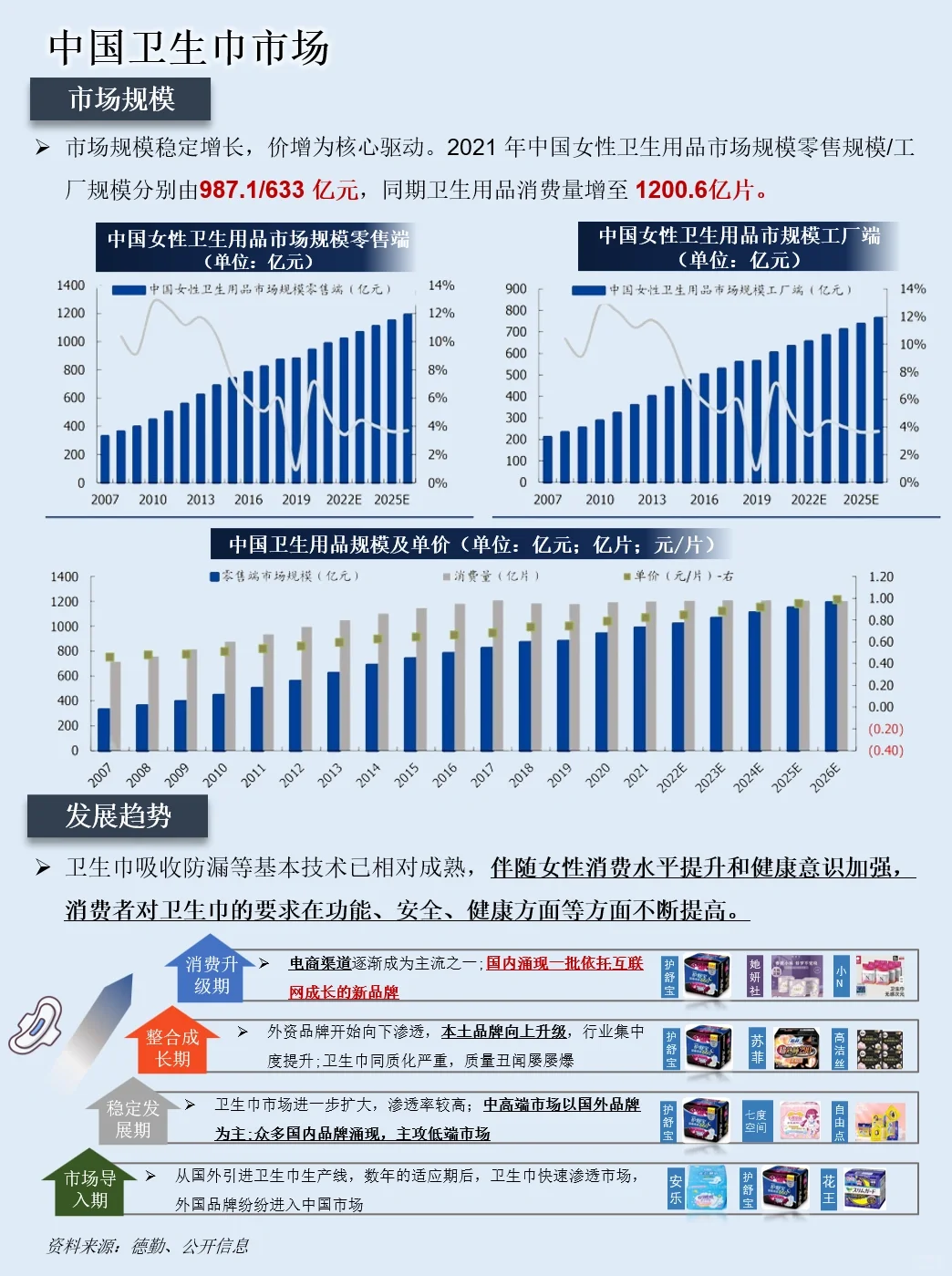 [向右R]时代的发展,女性对于个人私密护理越来越重视 [向右R]而女性对于自身的私密护理也不再局限于防侧漏夜用等 [向右R]原料成分、外观、贴合舒适性等均纳入了考察范畴 [向右R]今天就来看看为卫生巾产业链,了解一下市场情况
