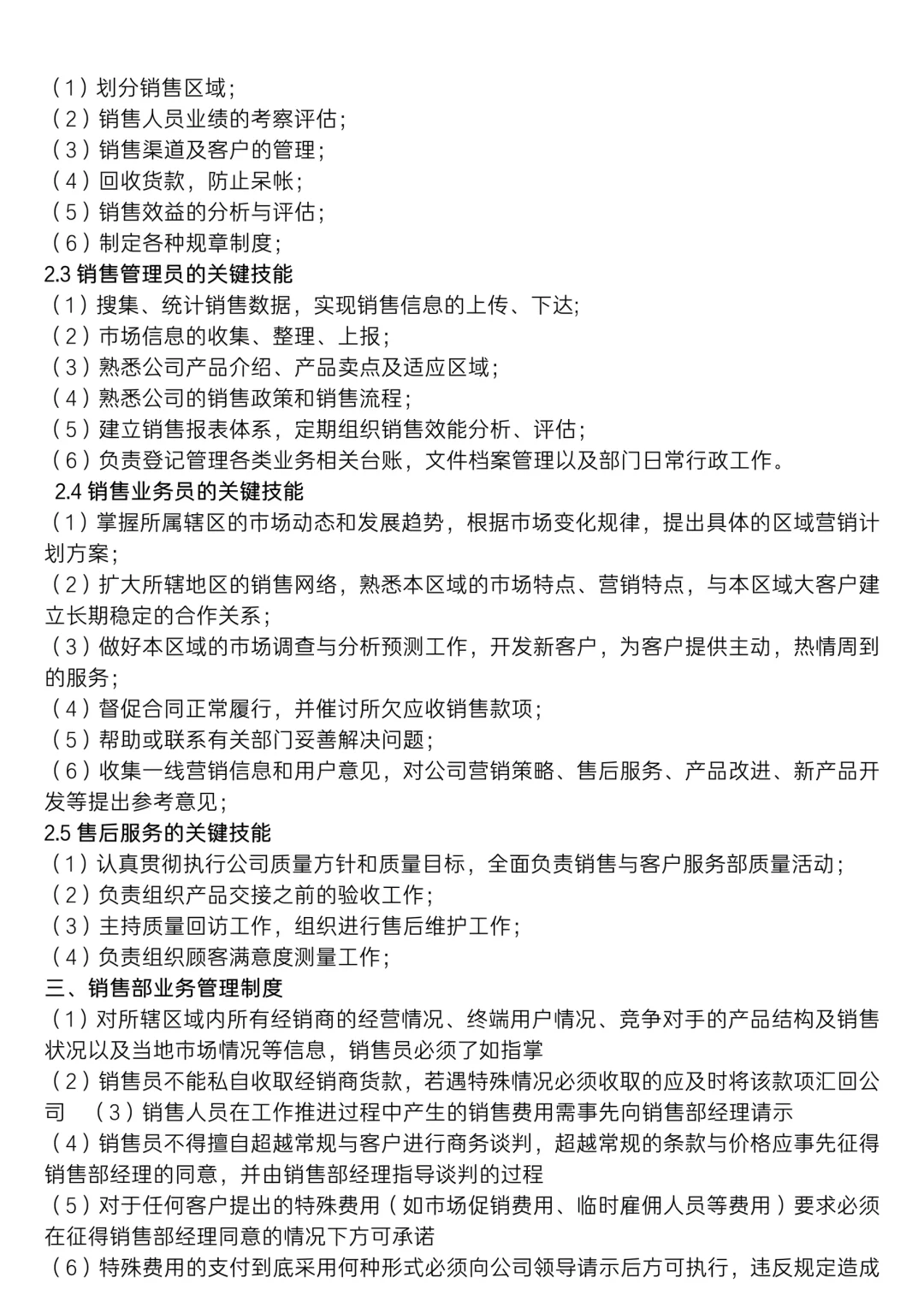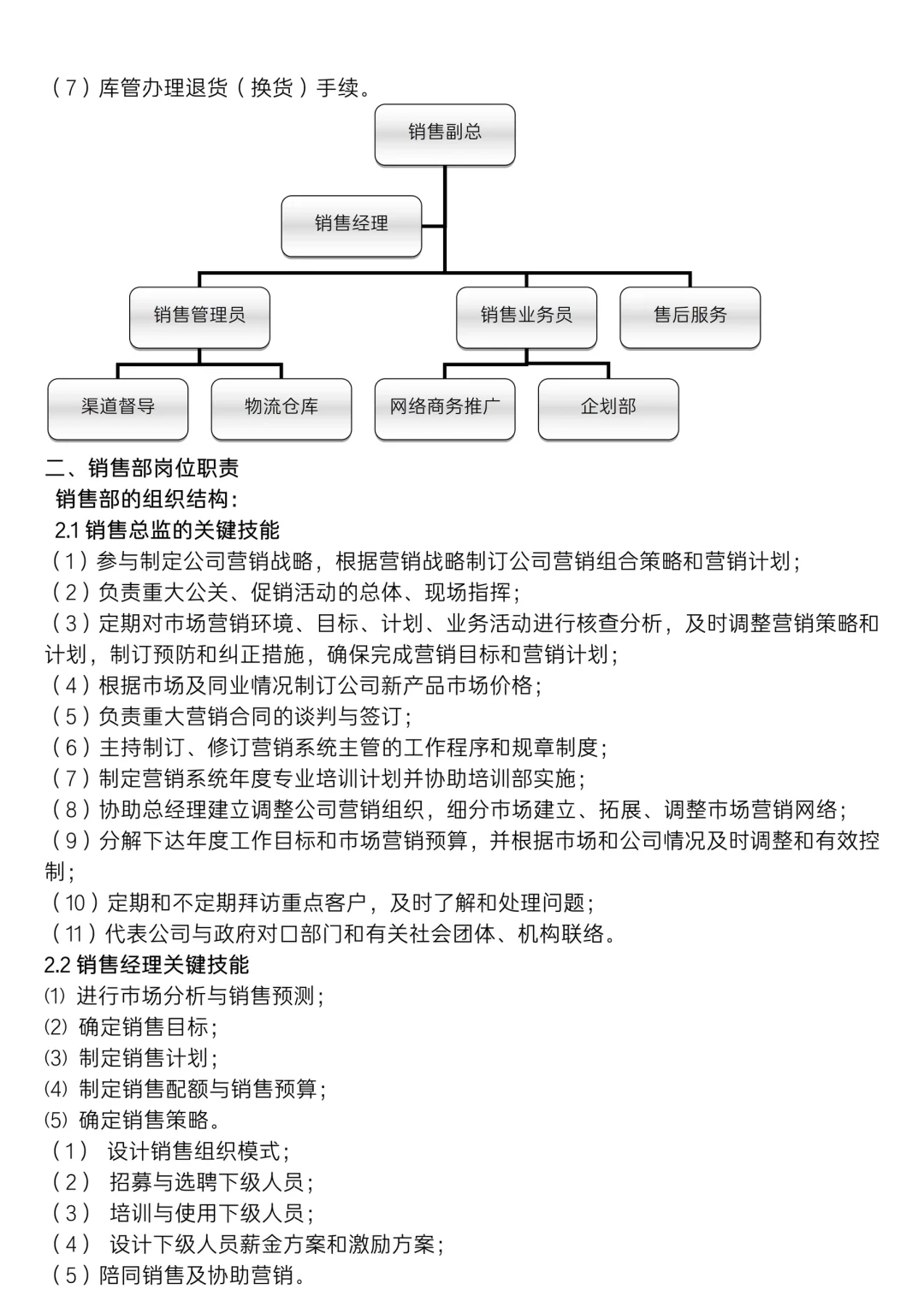 企业管理岗位职责销售销售管理人事绩效岗位职责规章制度