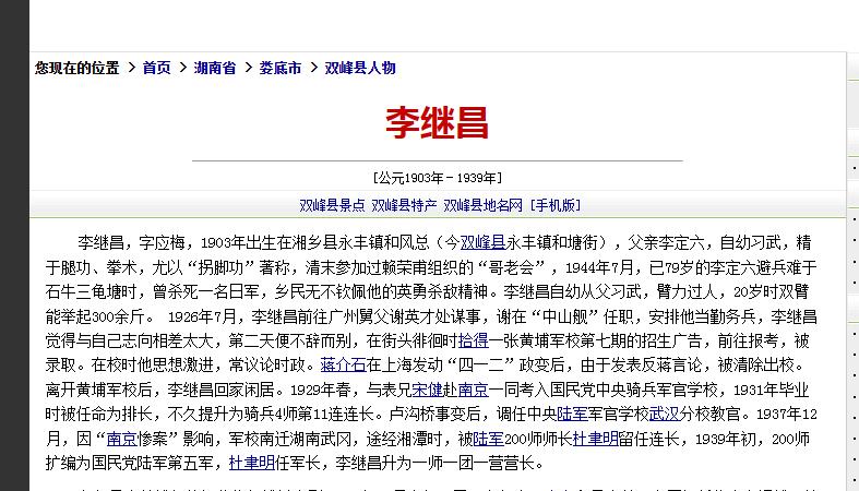 1944年日军抓来34个女子,让一个77岁的病老汉看守,老汉点头答应,突然,趁日军看守打盹,老汉一把抢过刺刀,从日军下巴捅进他的嘴里…… 湘西大山深处,一位白发苍苍的老者在艰难的摸索着前行,他就是李定六,一位77岁高龄的武林老前辈。 虽然风霜已在他的面庞上留下了岁月的印记,但他的眼神依旧透着一股英勇的神采。 年少立志习武,李定六自幼就已在家乡习得了一身了得的拳脚功夫。 那个年代,国家腐败愚蠢,四处都是洋人在中国土地上横行霸道。 看着日渐蒙羞的祖国,李定六下定决心要驱逐那些为祸中华的洋鬼子,曾一度加入过义和团。 尽管最终无功而返,但李定六的爱国热忱却从未熄灭。 时光荏苒,岁月无情。1937年,侵华战争全面爆发,东北已沦陷,日军铁蹄正逐步向南蹂躏而来。 虽然李定六的武艺不凡,但年事已高,已无法亲赴前线厮杀。 他只能将自己的期望寄托在儿子们身上,将他们一一送入黄埔军校,投身抗日救亡的战争洪流之中。 "父亲放心,我们定会为祖国尽一份绵薄之力。"临别时,李定六的四子李继昌如是说道。这番话犹言犹在耳畔,日子一晃已过去多年。 1939年昆仑关战役,李继昌在敌人的飞机扫射下壮烈牺牲,年仅36岁。噩耗传来,李定六痛哭失声,泪水早已洗濯了他的双眼。 可他依旧在儿子们面前竭力克制哀伤,不愿影响他们的抗日意志。他对剩下的三子说:"继昌是我们李家的英雄,你们要以他为榜样,一定要为国报仇!" 无奈年事已高,李定六无法亲自赴沙场杀敌。1944年,战火终于烧到了湖南永丰。大儿子李汉初只得将年迈体弱的老父亲送到偏僻的石牛山区躲避战乱。 谁曾想,日军竟也瞄准了这僻静的深山,视之为战略要地,派遣大军在此扎根。贪生怕死的一些乡亲也躲进了山里,却无意中陷入了鬼子魔窟。 就这样,有一天,李定六和同乡34名妇女不幸被日军活捉。那些日本鬼子见李定六年迈体弱,只将他留作"看守",而那些肤白貌美的姑娘们则被单独关押,准备亵渎凌辱。老当益壮的李定六当然明白这些亡命徒的险恶用心,一股怒火在他的心头熊熊燃烧。 就在这个黑夜,看守的日本兵打了个哈欠,迷迷糊糊的打起了盹。李定六看准时机,身子一沉,狠狠地撞了过去。只听"砰"的一声闷响,那日本兵的后脑就这样撞到了墙角凸起的石块上。 李定六可没有就此手软,他眼疾手快,一把夺过了日本兵的钢刀,朝他的下巴狠狠一捅。鲜血飚溅,那日本兵痛苦地在地上挣扎着,却是徒然。 接着,李定六将关押妇女的牢笼打开,请她们快快逃命。一行人仓皇逃进树林,远远地看到山下有日军岗哨,李定六毅然决然,独自朝那里引去,好让同伴们乘机脱逃。 山林幽暗,视野有限。谁料情况突变,李定六的腿部中了枪,险些当场毙命,可是他岂能就这样认输? 他狠命扑向其中一名日本兵,咬住他的咽喉不松口。尽管另一名日军对他狂射数枪,但李定六是半点都没有松劲的意思,他不放手,绝不能放手! 双方你死我活的缠斗着,滚下了一处陡坡。此时李定六眼前一黑,浑身是血,生命力在迅速流失。 可就在失去意识的短短瞬间,他的心中却出奇的平静,似乎看到了逝去儿子的英灵在召唤着他:"父亲,您为国捐躯,我们在天之灵也终于瞑目了..." 不知过了多久,李定六被村民发现,他们见状大喜过望。 眼前这个缩手缩脚的老汉,原来是个武术高手,竟然亲手阖杀了三名日军,为儿子报仇雪恨。 可惜,李定六的伤势过于严重,临终前他只来得及醒过一次,遗言却掷地有声:"我这一生,终无遗憾...国家前程...尚需儿孙们...继续...奋斗..." 说罢,他就这样与世长辞了。村民们为他扶柩火化,举哀景奋,并且将他的英雄事迹永远传颂下去。 正所谓,年岁渐高,斗志永存,虽然李定六年迈体衰,但是他用自己的血的火热来温暖了整个民族的信心。 信息来源:博雅人物网:李继昌
