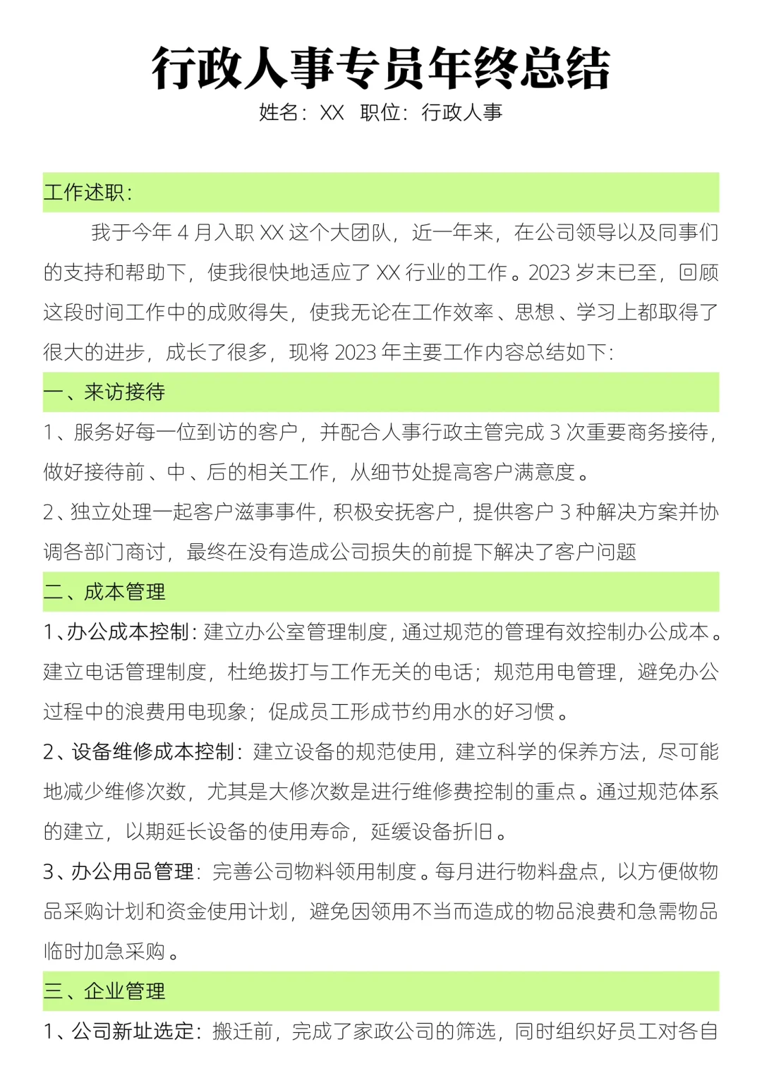 企业管理工作计划年度总结行政人事人事行政HRHR的日常职场
