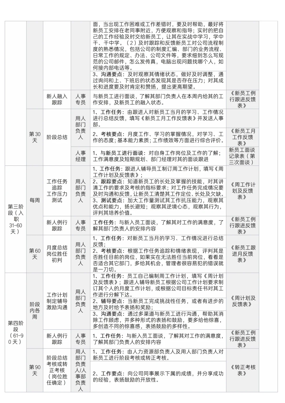 ✅新员工入职180天跟进计划表