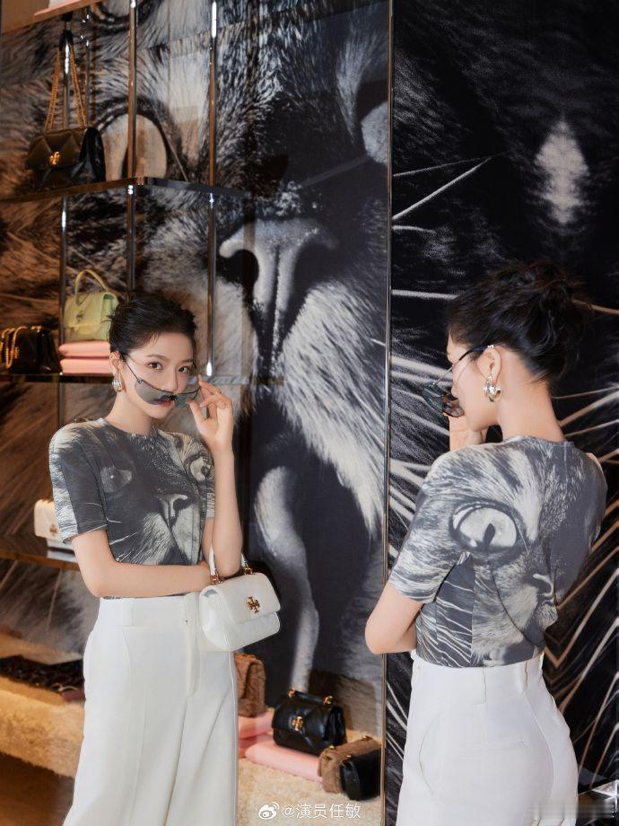 #任敏肩宽# 任敏发布最新活动图,调侃自己“今天是双开门敏”,好可爱好有梗哈哈哈