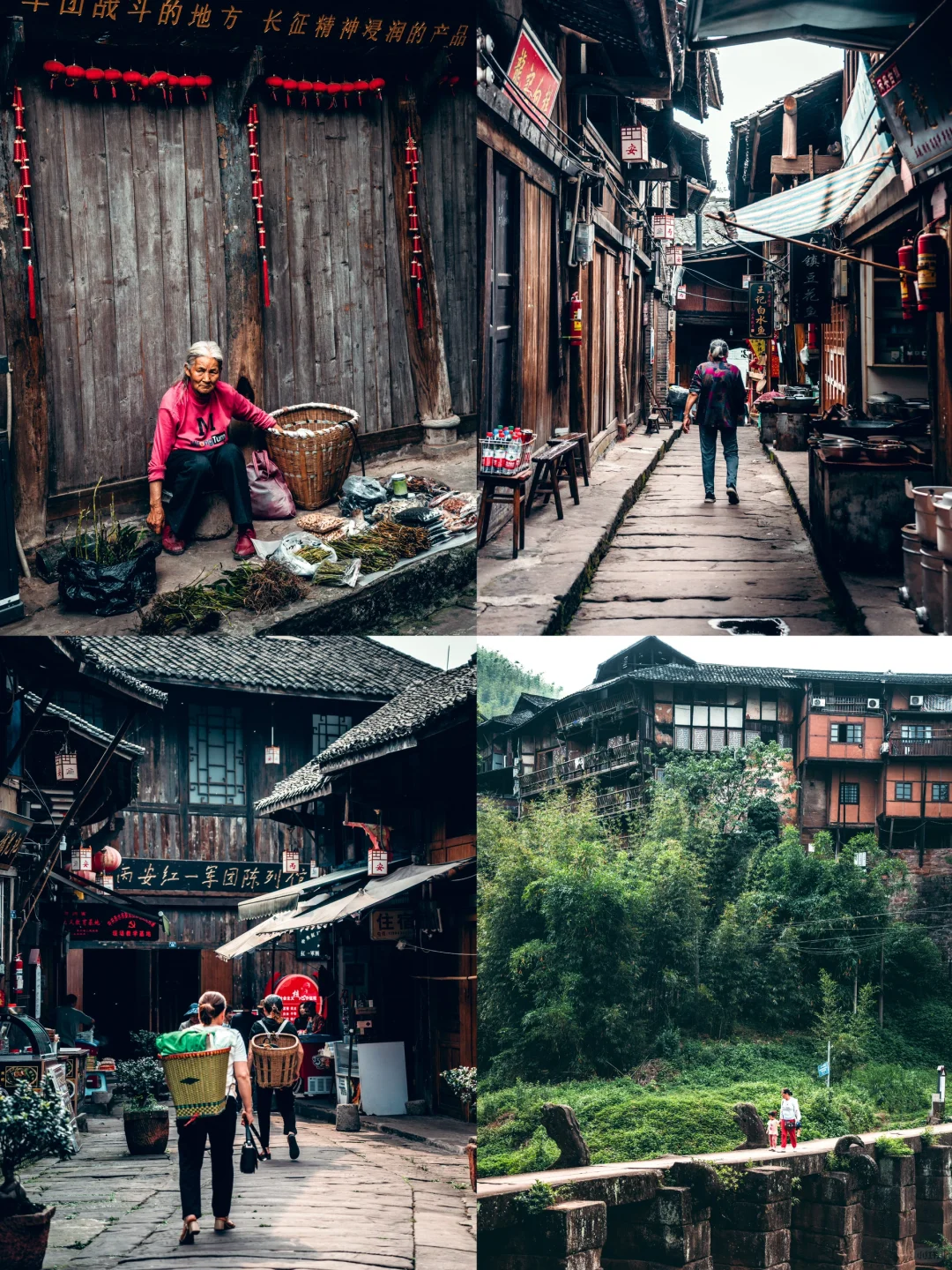 丙安古镇临崖多为吊脚楼建筑,是赤水人文气息非常浓厚的古镇,被专家学者誉为“明清建筑与历史的活化石”,具有“千年军商古城堡”之美誉。