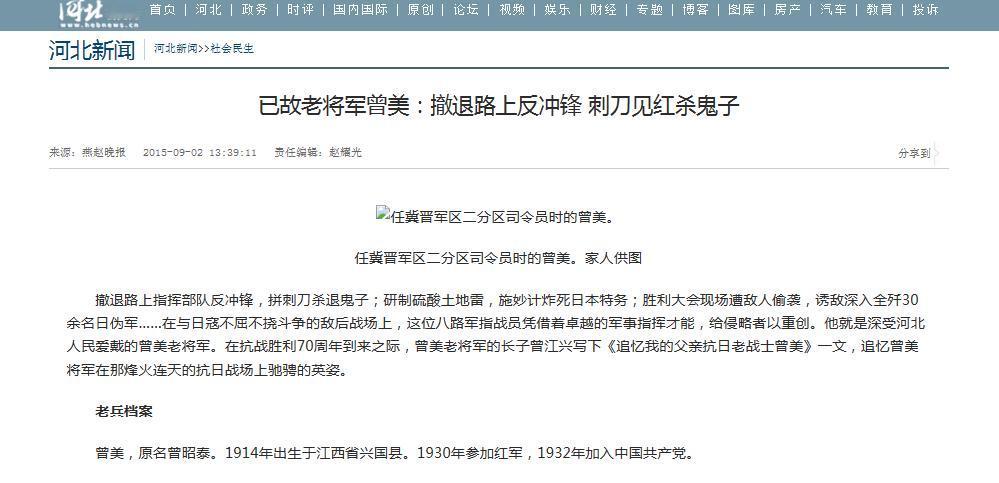 1943年,15个日本兵被八路军堵在窑洞里,他们拒不投降,没曾想八路军指战员曾美大手一挥,省些子弹,把他们活埋吧。 曾美,这个名字可能许多人都不太熟悉,他是我们的开国少将之一,而新中国仅开国少将就有798人之多,再加上曾老将军为人低调,在将近七十年后的今天,没有受到关注也算正常。 不过,曾老将军打仗的时候,也有不少值得一提的奇闻。 1943年,抗日战争已经进入相持阶段末期,侵华日军正深陷泥潭,一步步走向灭亡当中。 这年7月,曾美率部在山西崞县打了一场漂亮的胜仗,党组织随即商量决定,要马上“乘胜追击”,在村子里举办胜利大会,向群众们宣传这一好消息,鼓舞他们相信抗战必定胜利的决心。 当时,崞县内各个村镇的三千余名群众纷纷来到现场观摩大会,为了保护他们的周全,八路军在村子周围严密布控。 但大会才刚刚揭开帷幕,就突发意外情况。 群众们满怀兴致地听台上主持大会的政委讲话时,不知何处突然传来一声尖锐的枪响,战士们作战经验丰富,一听就知道是从村子东边响起的。 在台下观看大会的指战员曾美听到枪声后,他深知今天决不能出乱子,不然不能给村子里这三千多名群众一个交代。 同时,曾美对周边敌人的基本部署情况有大致的了解,他知道这是村子附近一个据点里的日伪军打过来了。 据他所知,那个据点里敌人并不多,敌人可能也知道今天村子里要开胜利大会,这是来偷袭来了。 不来还好,既然来了,那择日不如撞日,不如就将敌人一网打尽。 说时迟那时快,听到枪声的时候,曾美未有犹豫,立即走上戏台部署战士展开工作,一部分到村东头阻击敌军,一部分去西面抢占高地并隐蔽起来准备伏击敌人,同时组织群众们安全撤离。 曾美和其他指战的同志们决定采取诱敌深入的战术,命正面交火的队伍不要主动出击,让敌人以为八路军不敢出来,一步步深入他们的陷阱,同时派侧翼从敌人背面包抄,切断日伪退路,也对敌人形成歼灭包围圈。 战术卓有成效,正面主力一声清脆悠扬的冲锋号传出,两支队伍同时进攻,腹背夹击,敌人被打得猝不及防,不少伪军当场缴械投降。 不过,还有少部分日伪趁机躲进了一处孔窑洞当中,负隅顽抗。 曾美从俘虏的伪军那得知,窑洞里至少有15个鬼子和好几个伪军,还带着一名汉奸翻译官。 而伪军和汉奸本就是贪生怕死之徒,八路军队伍向洞里喊话,采用“攻心”战术,没过多久伪军和那名汉奸翻译就逃了出来,那15个日本鬼子仍在顽抗。 这个时候,外头的侦察员发现并报告附近的日寇正在朝着村子过来,应是收到消息赶过来增援了。 曾美想到,既然鬼子不打算投降,那什么都不用说了,活埋了便是,其他同志也表示赞同。 一旁的村民听说要活埋了洞里的鬼子兵,兴奋地满村子飞奔,一边跑一边吆喝“快走啊,活埋鬼子去呀,谁来晚了就摊不上份啦!” 整个村子男女老少一听,抄起趁手的家伙事儿就冲了出来,生怕慢了一步打鬼子就没他们的份。 曾美让汉奸翻译给洞里的鬼子兵下最后通牒,而他们仍旧不肯投降。 于是,随着曾美的一声令下,村民们迫不及待地爬上坡顶,你一铲我一锹地往窑洞填土,人多力量大,没过多久就已经将洞口堵得严严实实,蚊子都飞不出来一只。 后来,那十五个鬼子就这样活活闷死在了窑洞里。 (信息来源:《已故老将军曾美:撤退路上反冲锋 刺刀见红杀鬼子》——河北新闻网)