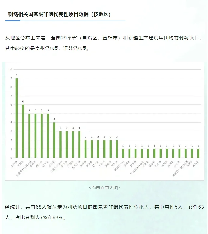 你知道吗?中国的刺绣艺术遍布全国29个省,每个地方都有其独特的刺绣风格,共有77项国家级非遗代表性项目,展现了刺绣艺术的丰富多样性。