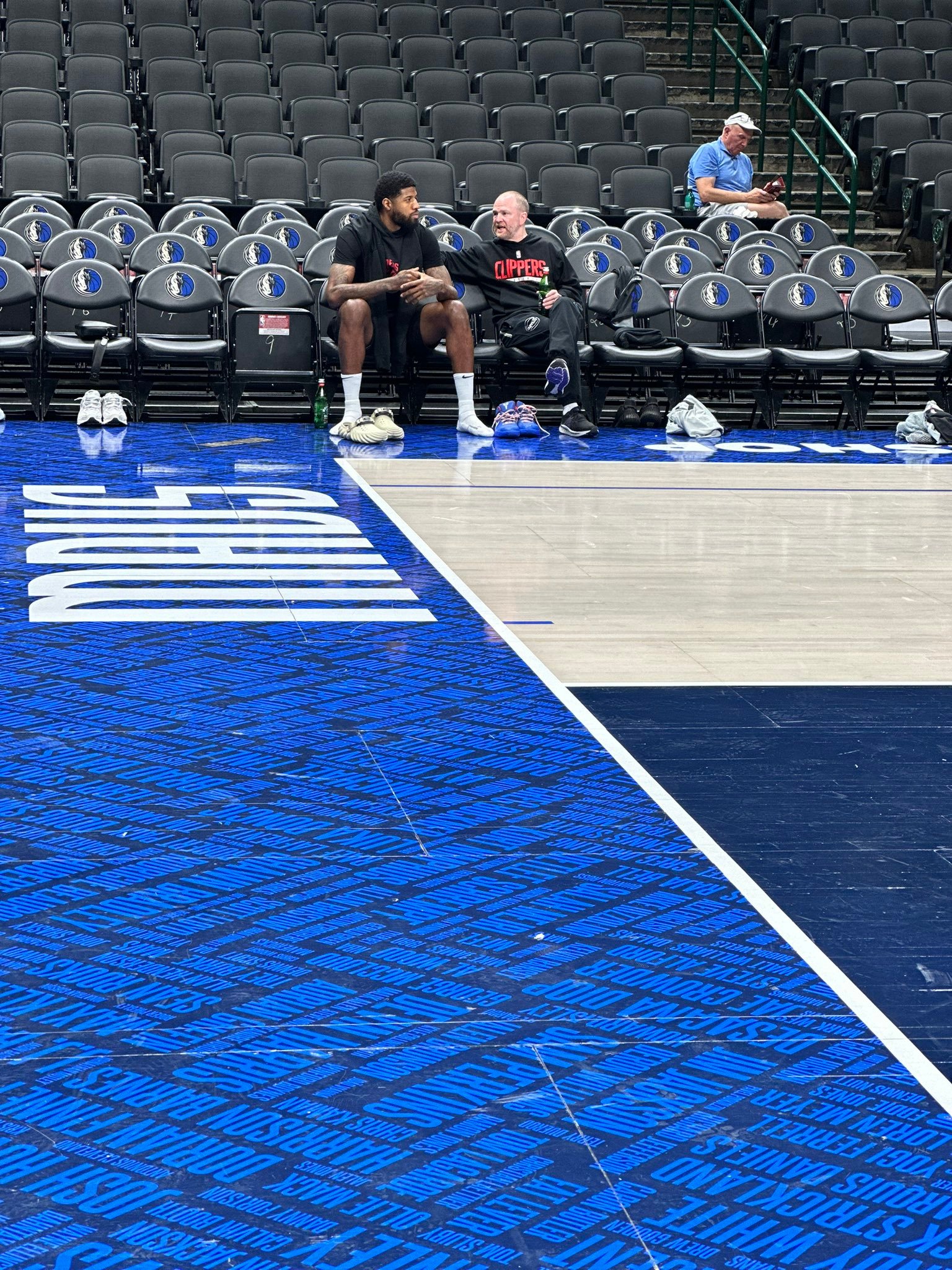球队总裁弗兰克与小卡以及乔治进行交谈。#快船vs独行侠##伦纳德乔治状态低迷#