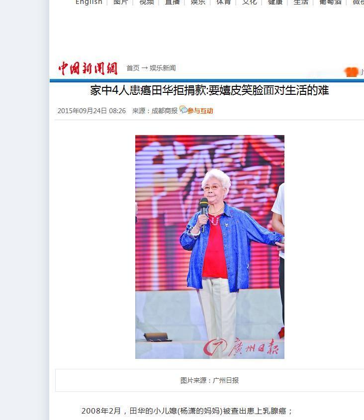 “白毛女”田华,丈夫肝癌、小儿子肺癌、两个儿媳妇乳腺癌,还有一个儿媳妇车祸走了,年过90的她,眼睁睁的送走了一个又一个亲人。 每当提及田华这个名字,大多数人首先想到的是银幕上那个塑造了经典形象的演员。 在这位曾经荣膺金鸡奖最佳女主角的资深艺术家身上,还蕴藏着一段比她所饰演的任何角色都更加曲折动人的人生故事。 1928年,田华出生于河北唐县一个贫苦的家庭。母亲早逝,她从小就习惯了独自照顾自己。 为了填饱肚子,10岁的她就已经扛起了家里的重担,上山摘野菜,爬树摘嫩枝,挑水种地,样样精通。吃力挣扎的日子持续了数载,直到12岁那年,天生擅长歌舞的她被发掘加入剧社,才终于翻开了人生新的一页。 1949年,田华以出色的表演实力在电影《白毛女》中获此一役。她饰演的喜儿一角精湛入木三分,一举成为家喻户晓的明星。 此后,田华主演了《白求恩大夫》《碧海丹心》等一系列佳作,事业节节高升,1957年她更凭借《法庭内外》一片摘下了首届中国电影金鸡奖最佳女主角的桂冠。 就在事业达到巅峰之时,年方21岁的田华邂逅了她的终身伴侣苏凡。这位出身剧社骨干的文化人一开始就被聪颖好学的田华所吸引,两人渐渐相知恩爱,最终结为夫妻。 尽管家境清苦,但二人彼此扶持、相亲相爱、儿孙绕膝,过着世外桃源般的安稳生活。谁也没有料到,这短暂的安宁之后,是一场无尽的惊涛骇浪在等待着他们。 厄运的来临始于2008年。先是田华的小儿子被确诊患有肺癌,让这个和睦的家庭瞬间陷入绝境。 就在她倾尽全力踌躇满志为儿子寻医问药之时,更多噩耗如暴风骤雨般接踵而至:4年后,相濡以沫几十载的丈夫苏凡被查出患有肝癌,两个儿媳又先后被确诊乳腺癌,还有一个儿媳因为车祸离世... 一个个噩耗如雷贯耳,狠狠地击碎了田家人挣扎求存的希望。 面对家中仅存的积蓄所剩无几,田华内心悲痛万分,却依然咬牙坚持下去。她四处奔波求医,不远千里只为亲人的生命,她甚至不得不重新回到事业第一线,凭借微薄的片酬维持家庭开支。 对于丈夫苏凡病情的选择,田华亦是殚精竭虑。医生告诉她,手术风险实在太高,权衡再三,她决定尽可能多陪伴丈夫一段时日。 就这样,田华耗尽心力,却终究无能为力阻止亲人离世的命运。 在那个特殊的年代里,有人因为田华在工作中一丝不苟的敬业精神而置之挞议,批评她"冷酷无情"。 但是谁又能真正体会她当时的无助和痛苦?当儿媳离世的噩耗传来时,田华正在录制节目,她没有中途退出,而是硬撑着完成了工作,只因她已竭尽全力,再无他法。 就这样,面对接踵而至的生离死别,田华用自己的亲身经历书写了一部可歌可泣的家庭史诗。 作为母亲和妻子,她为了亲人的生命和健康而英勇奋斗,历尽艰辛却从未放弃希望。 如今,96岁高龄的她、依然乐观向上,积极参与各种公益活动,用自己的实际行动关爱社会。 (信息来源:《家中4人患癌田华拒捐款:要嬉皮笑脸面对生活的难》——中新网)