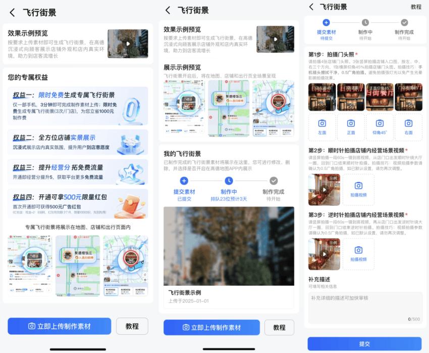 这是高德发布“百万烟火好店支持计划”、宣布为100万商家免费开放“飞行街景”功能后,48小时内收获的市场热情。