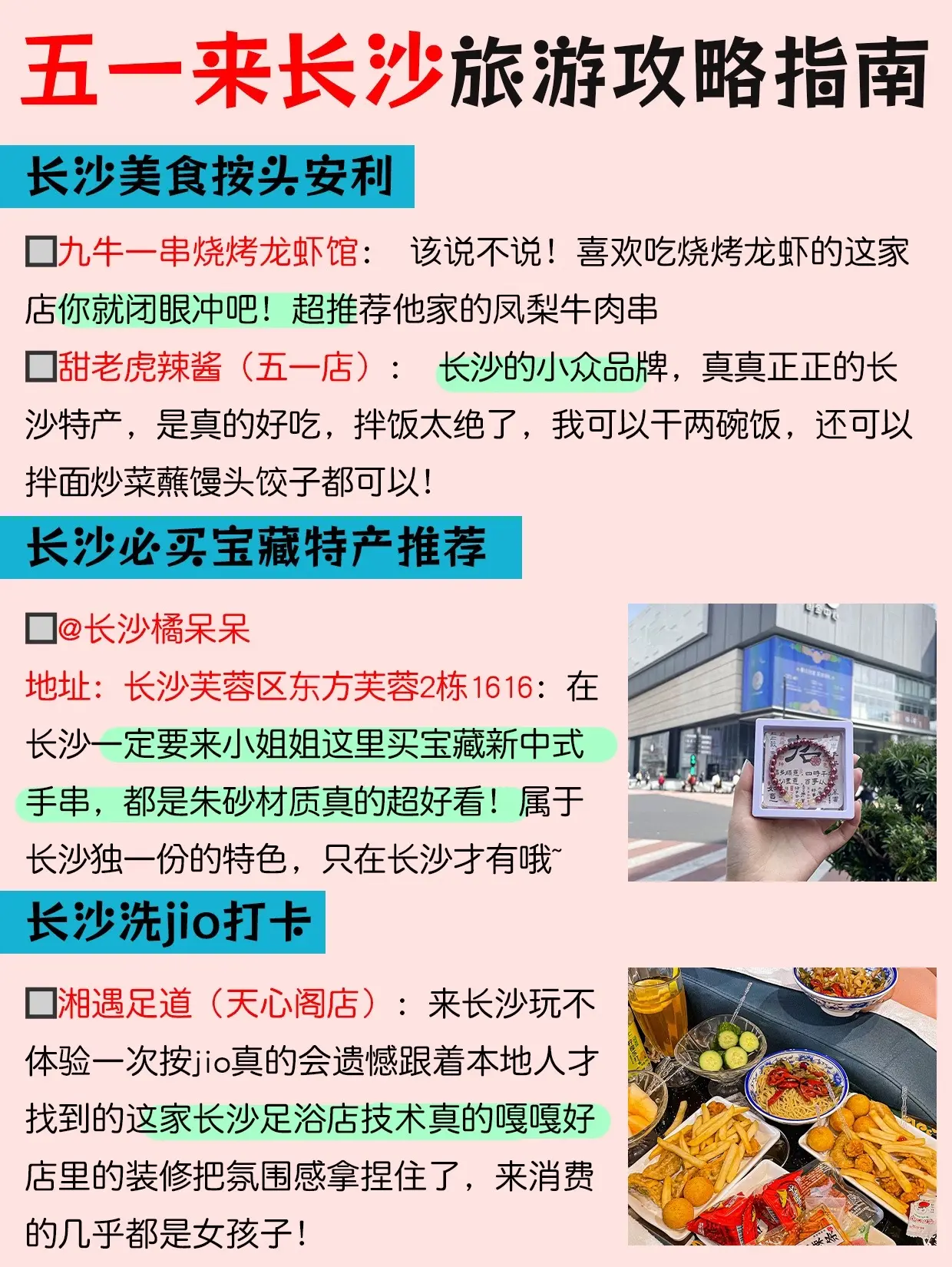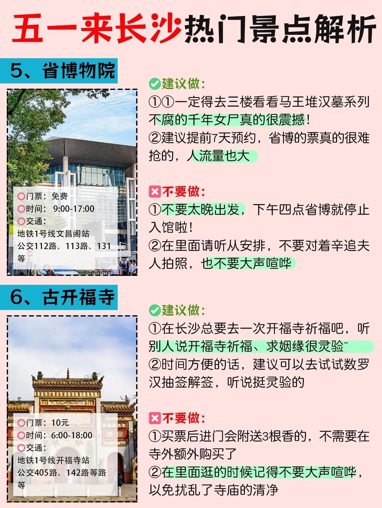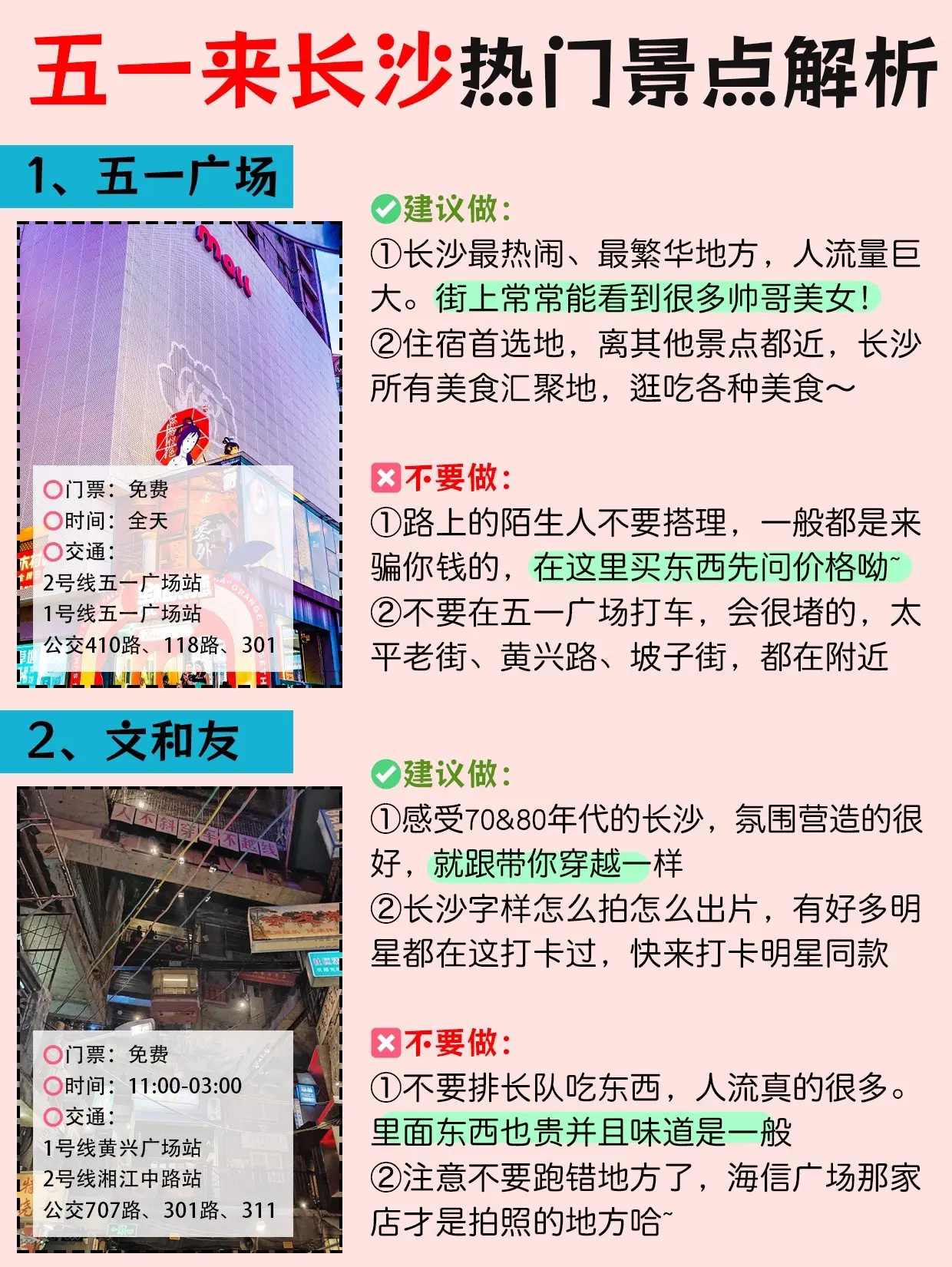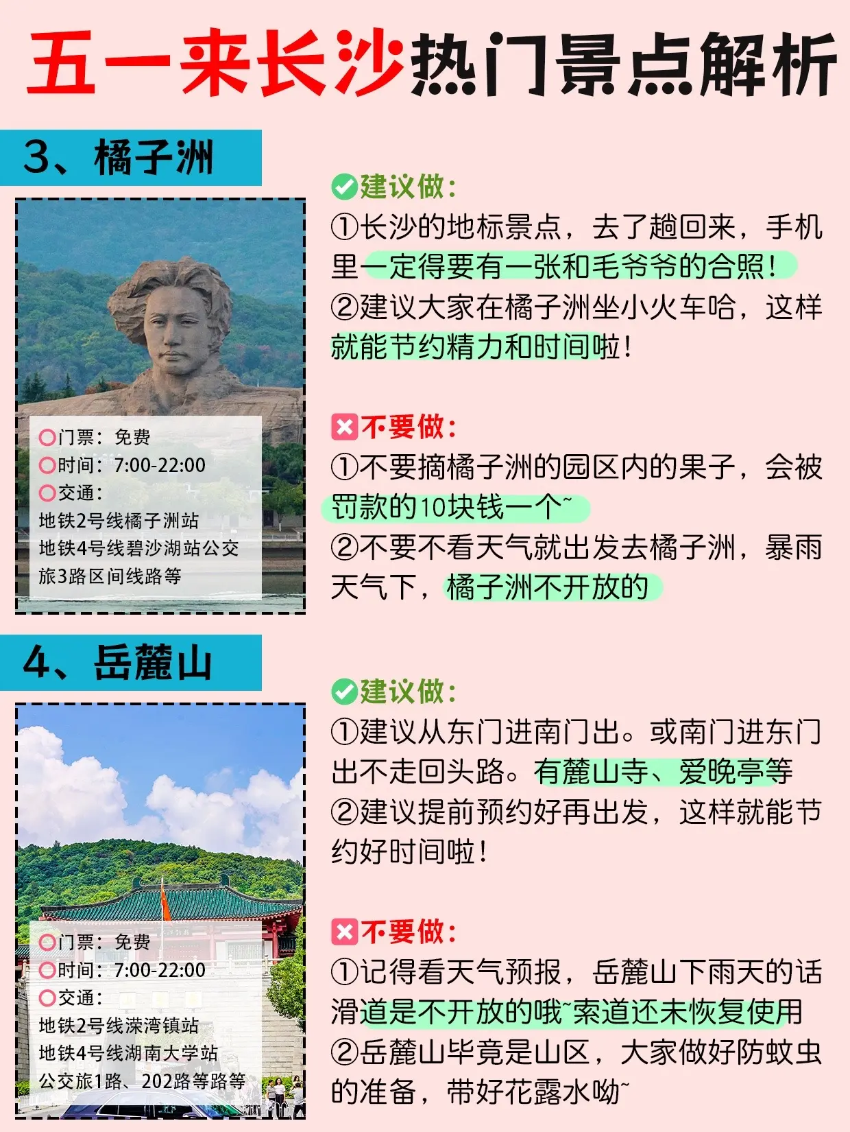终于有人把长沙旅游景点正确玩法说明白了。超详细的景点解析,给五一到长沙旅游的姐妹们,不要错过这份攻略喔!愿去长沙游玩的姐妹都能刷到这份攻略~跟着玩绝对不会出错 - 长沙旅游路线安排 DAY1:五一广场→IFS国金中心→坡子街→太平街→解放西 DAY2:岳麓山→爱晚亭→大学城美食街→李自健美术馆→谢子龙影像艺术馆 DAY3:橘子洲→湖南省博物院→橘呆呆工作室→万家丽→扬帆夜市