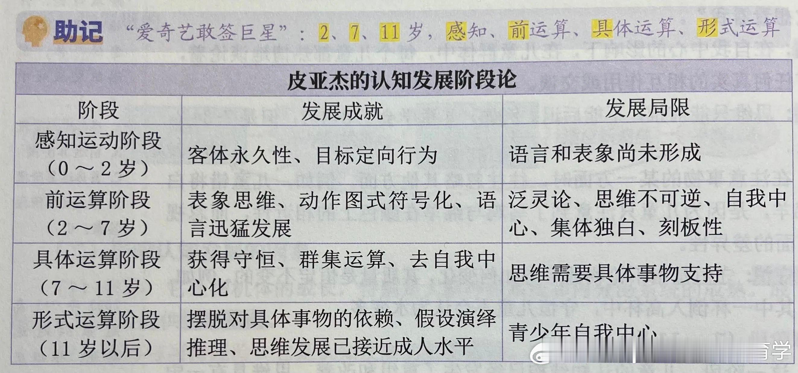 例如:Lucky高分笔记中皮亚杰认知发展阶段论的四个阶段,就运用了谐音助记方法。【图2】