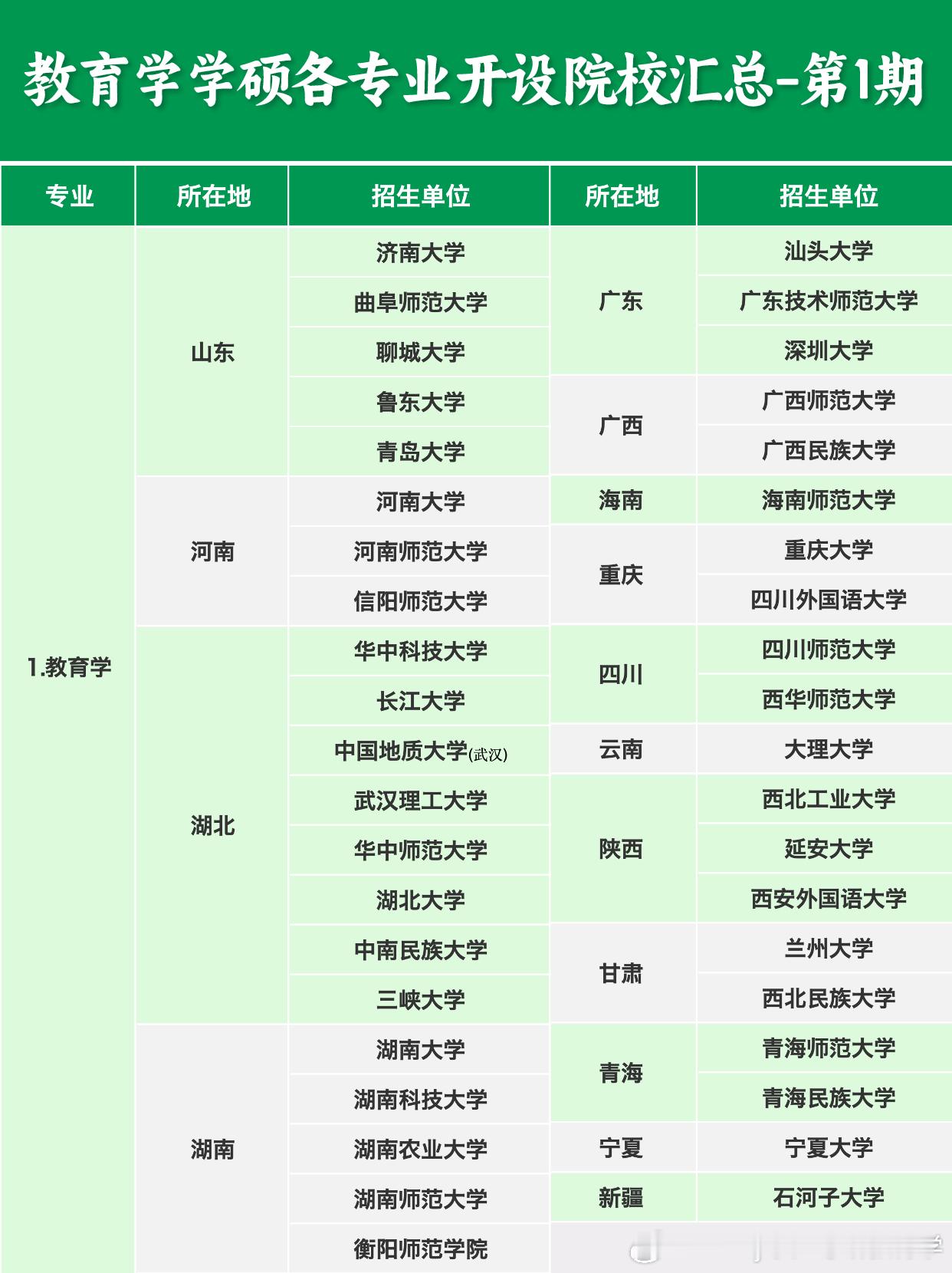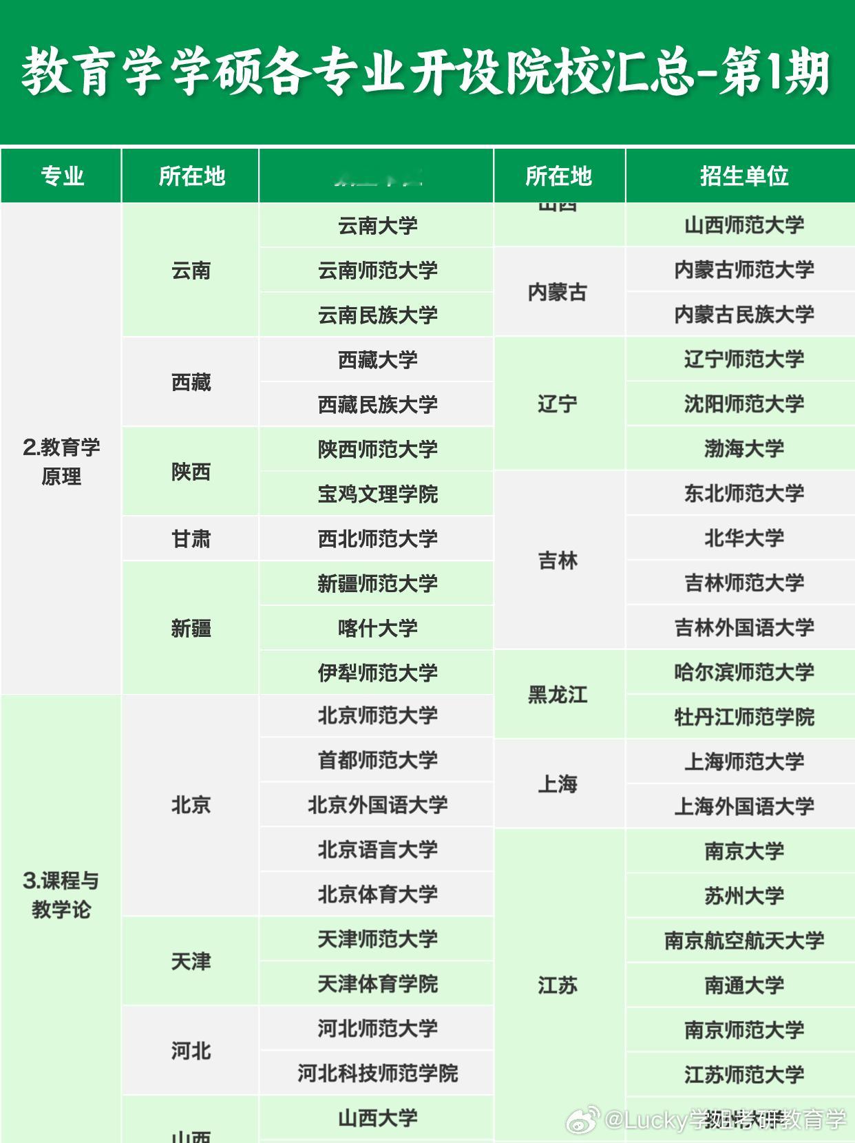 教育学学硕✨各专业开设院校汇总-第1️⃣期