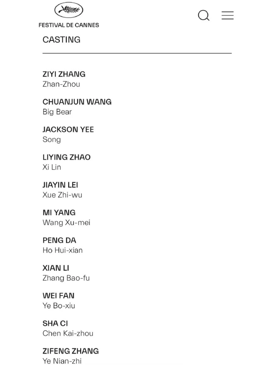 陈可辛 作品《酱园弄》确认出席戛纳电影节红毯 演员阵容为: 章子怡 王传君 易烊千玺 赵丽颖 雷佳音 杨幂 大鹏 李现 范伟 此沙 张子枫 .