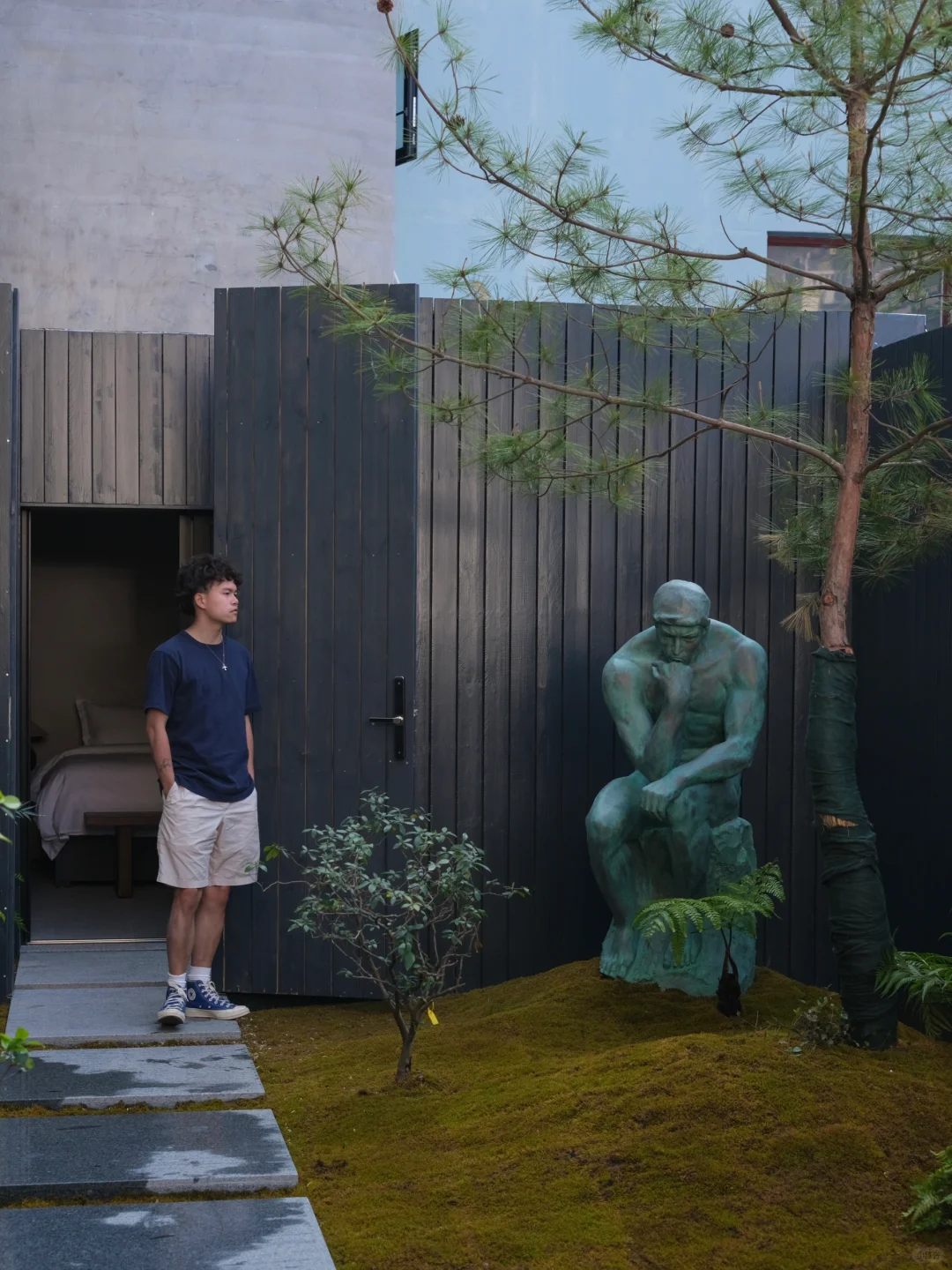 小隐于市,高大独特的民宿外立墙后院还藏着一方江南小庭院,坐在古树假山的小院里品绿杨春茶,或是坐在猛犸的咖啡吧喝美式,感受扬州慢生活。