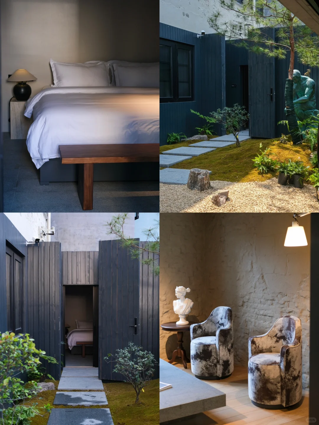民宿房间以黑白为主色调很有设计感,无线充电、高品质床品及智能家居将舒适度拉满。